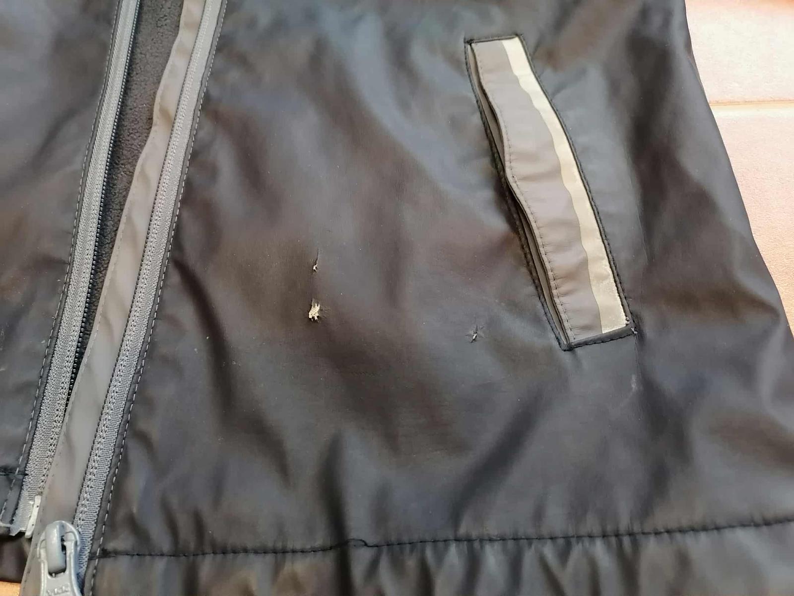 Predám zateplenú bundu do dažďa po dvoch deťoch, dobrý nosený stav. Pri ľavom vrecku vidieť pár malých dierok - zohľadnené v cene. Cena bez poštovného