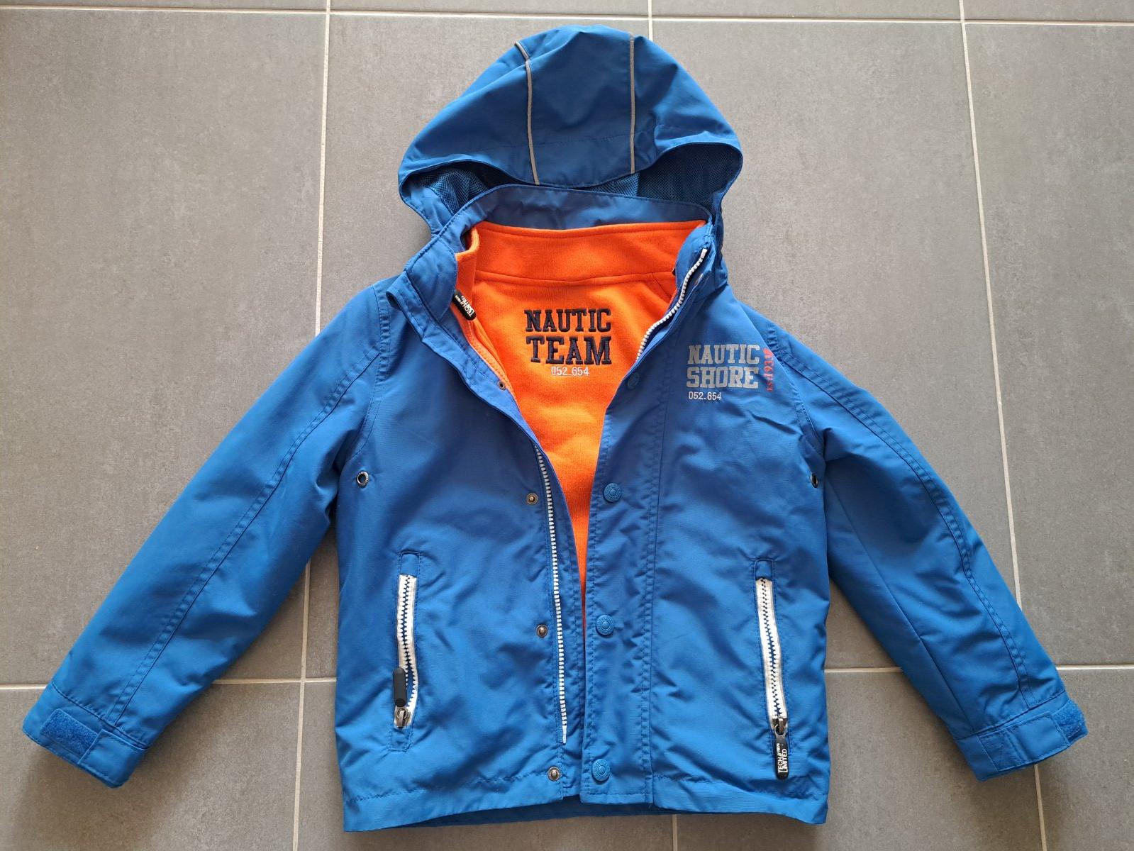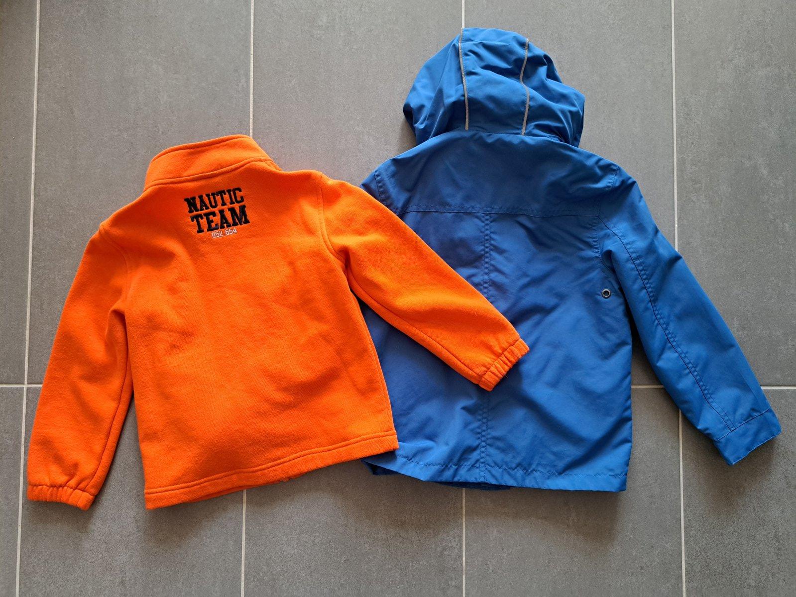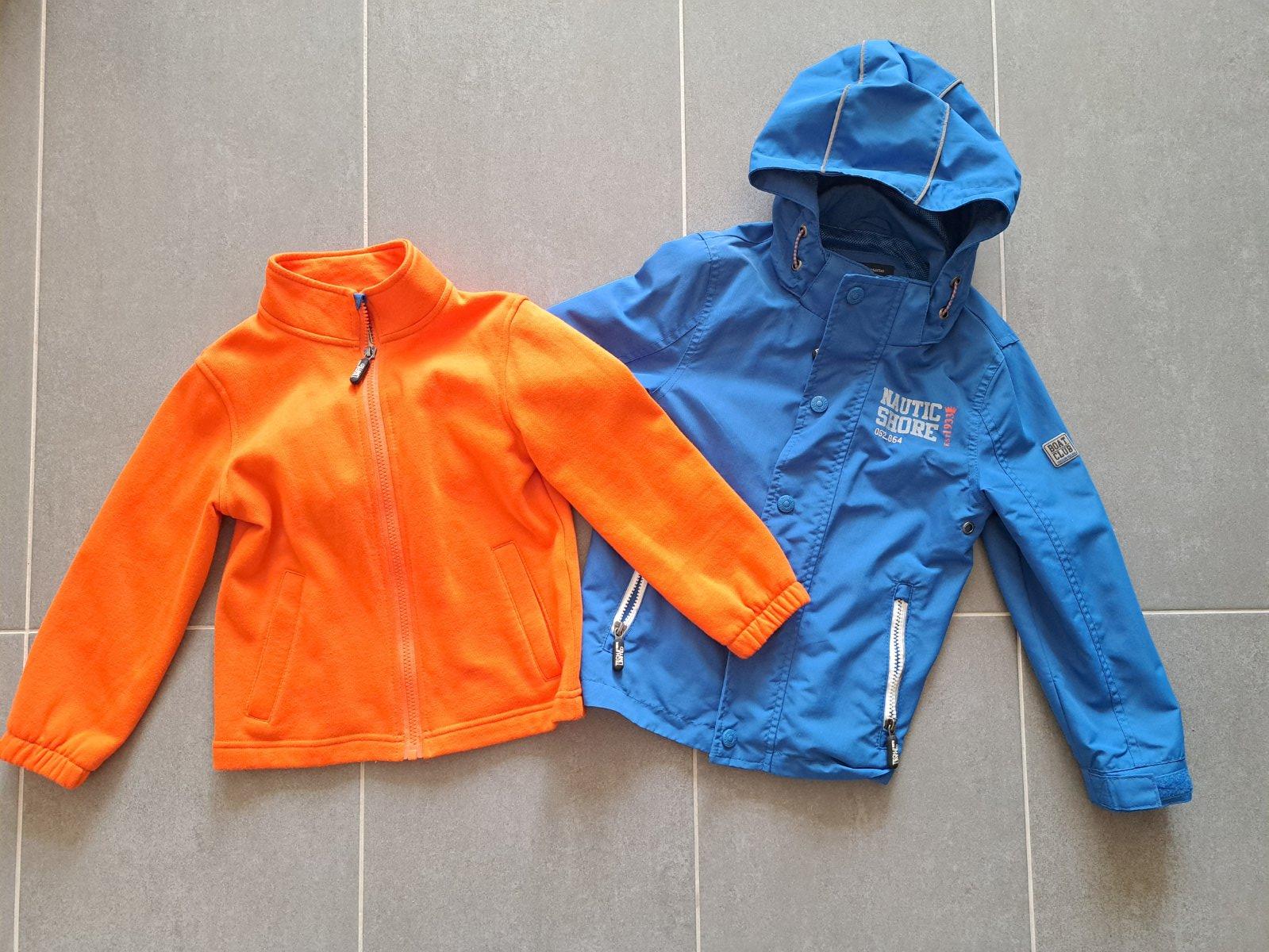 Super stav, 2 bundičky v jednom, obidve tenšie, dajú sa mosiť aj samostatne, Palomino, veľ. 122 modrá d 48-51,5, r 47, š 38 modrá bundička má tbledšiu farbu, oranžová top stav