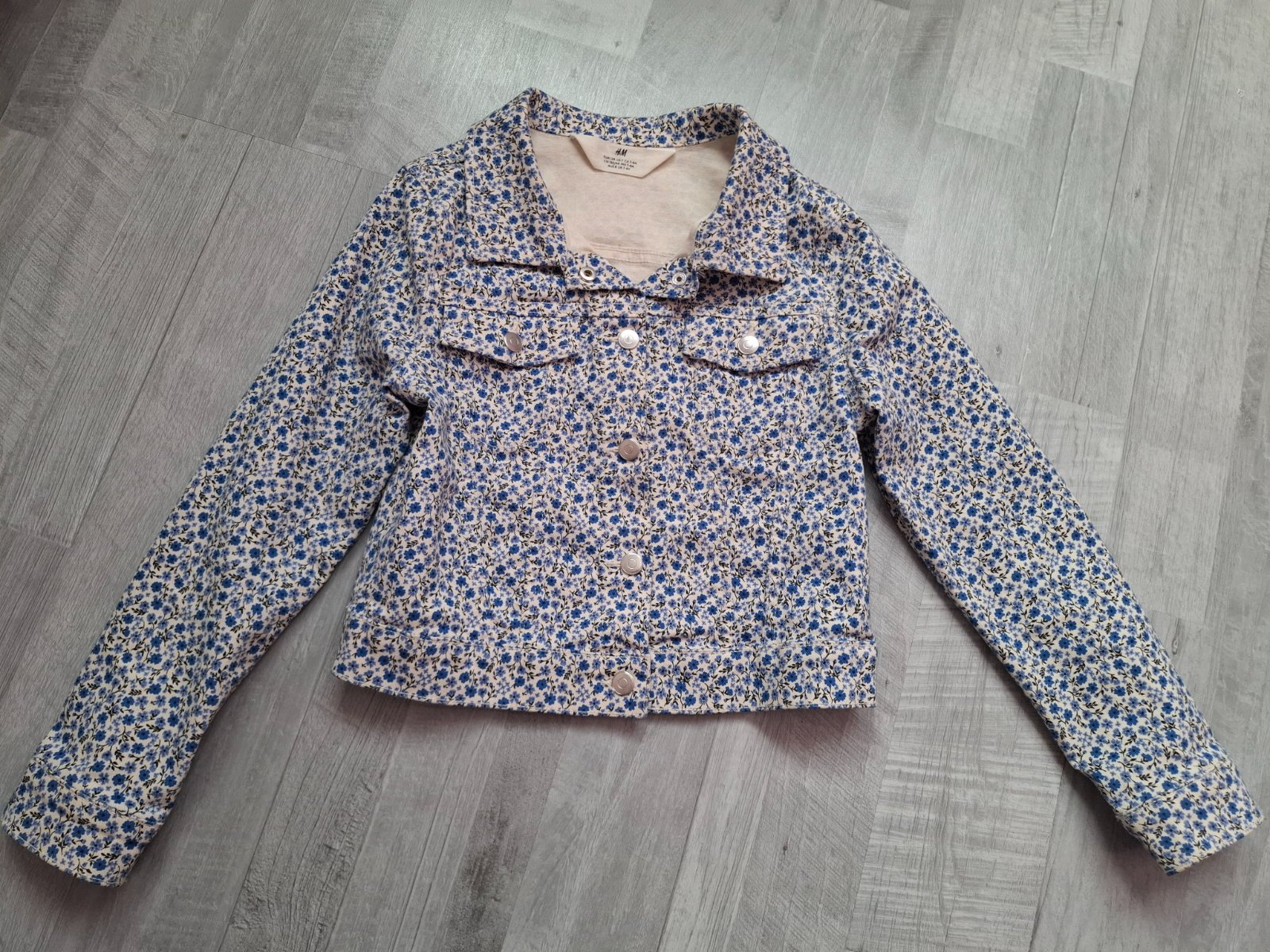 Veľmi pekná bundička na štýl riflovej bundy. Vyborny stav. Zapínanie na cvoky.
