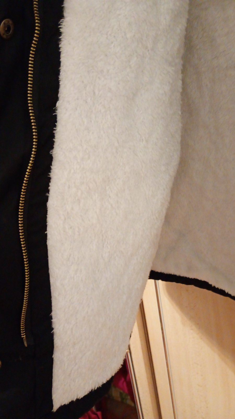 Bunda je v peknom nosenom stave, jediná chybička - chýba kapucňa. Je čierna len foto skresľuje.