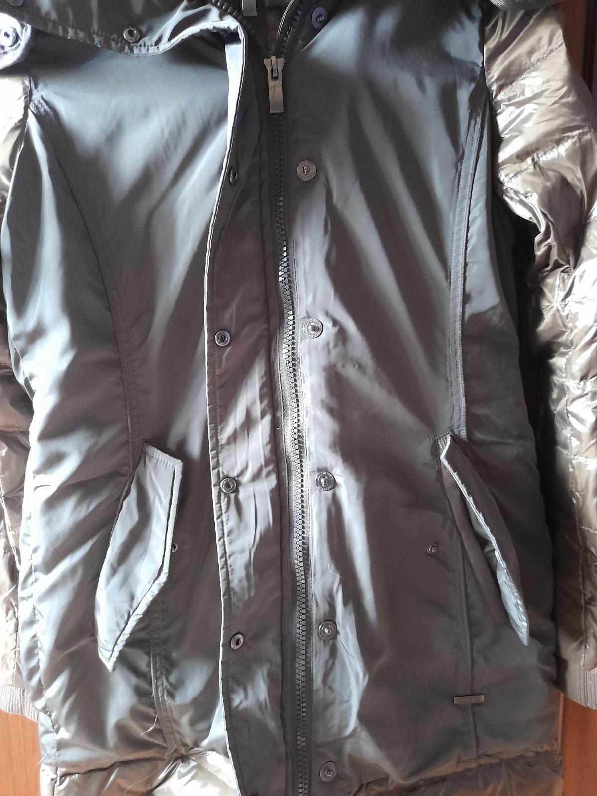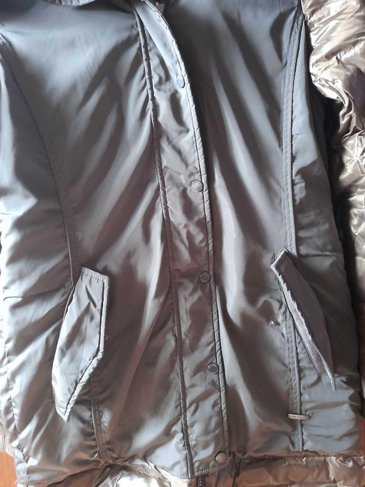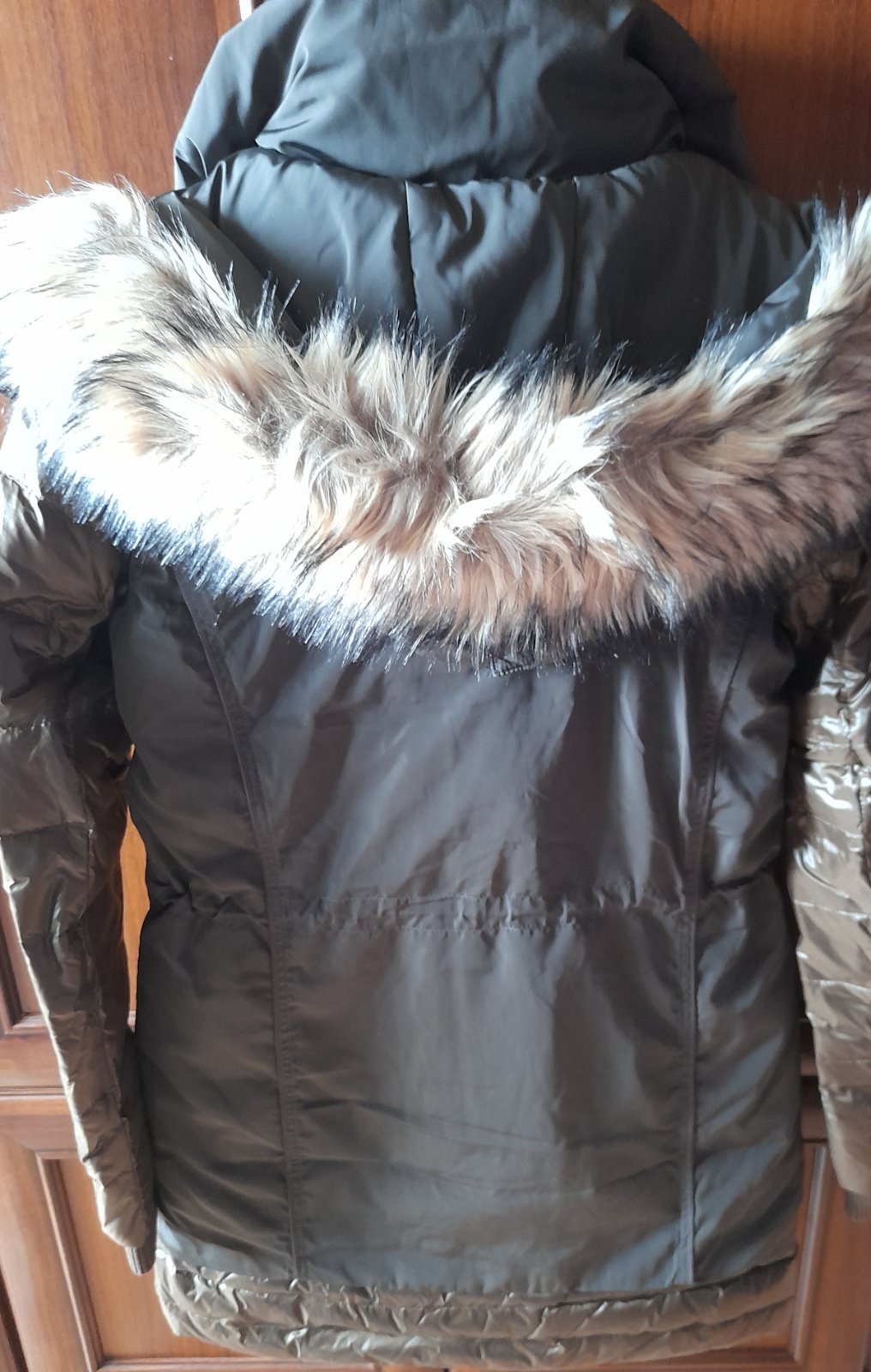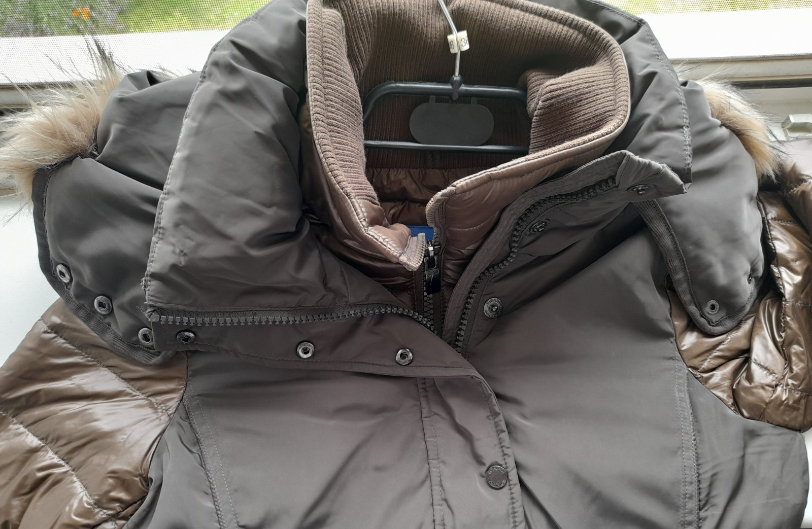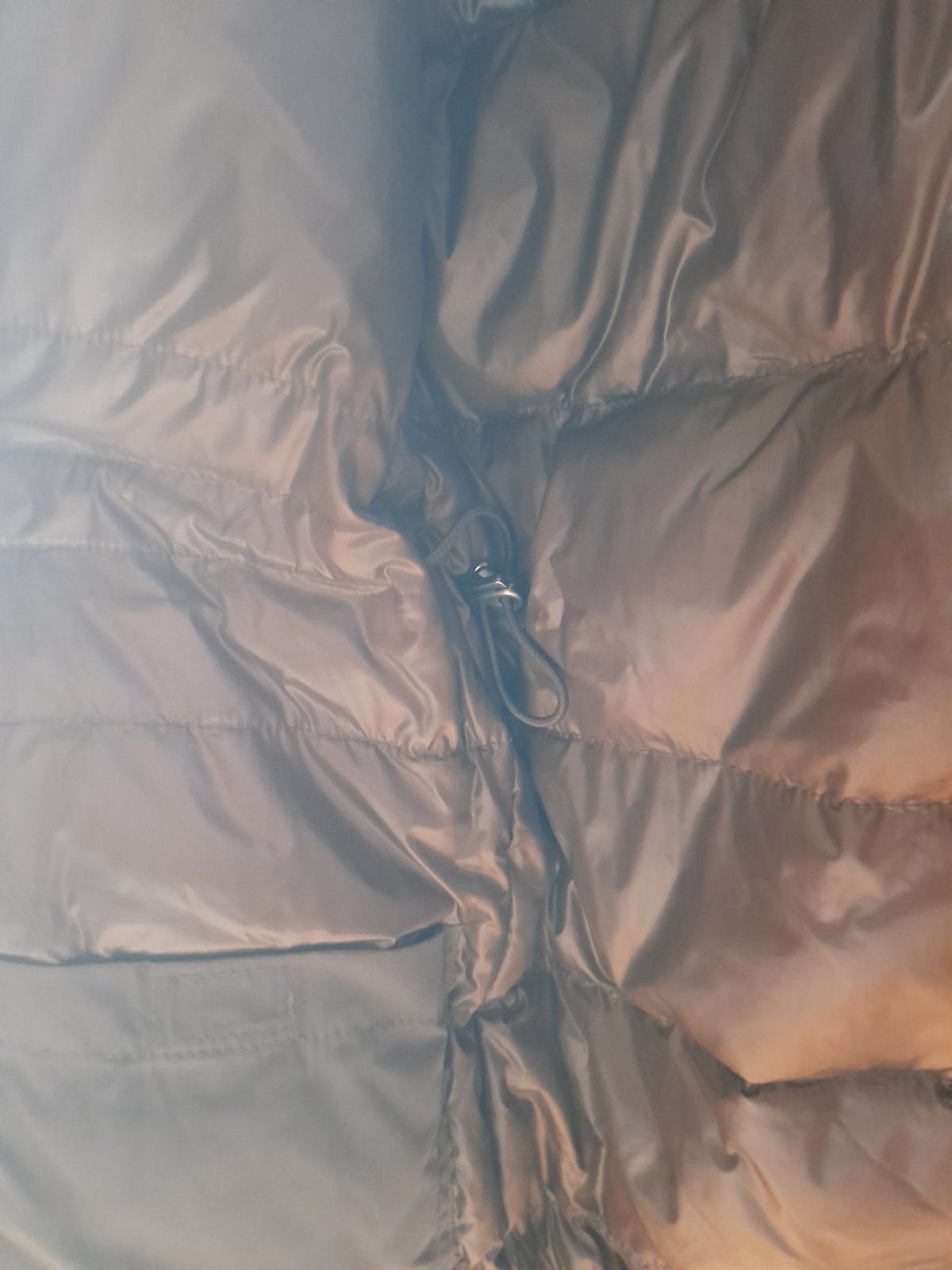 vnútri vrecko (viď foto), po oboch stranách cvoky na stiahnutie (viď foto), farba je hnedá matná aj lesklá, fotené s bleskom, bez aj na dennom svetle pre lepšie zachytenie farby, zapínanie má zips jedna časť, následne zips druhá časť matná a ešte cvoky, kapucňa odopínateľná, nepristane mi farebne preto posúvam