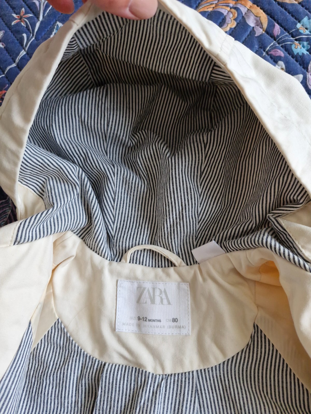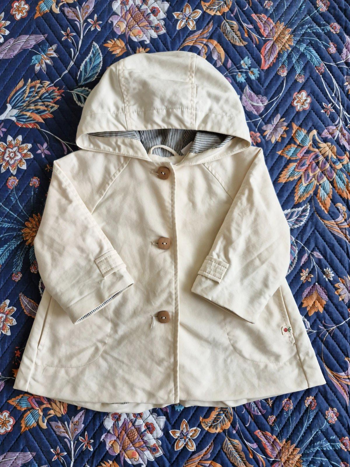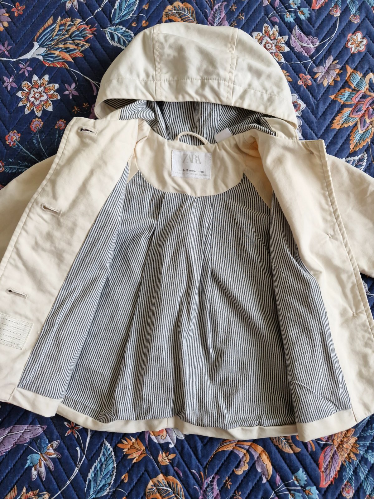 Krásny smotanový kabátik, vo veľkosti 9-12m, 80. Zn.Zara, s vreckami.
