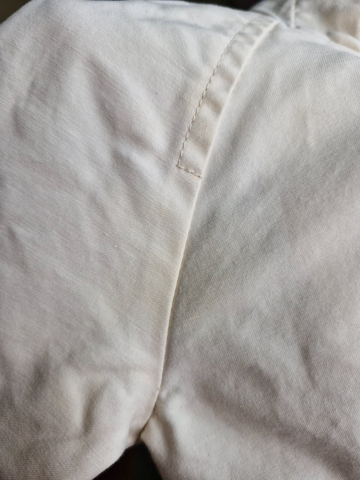Kabátik má jednu chybu a to fľak - na spodnej časti pravého rukáva smerom k paži. Neskúšala som ho nijak špeciálne odstraňovať, snažila som sa ho zachytiť na foto - človek sa musí lepšie prizrieť,aby ho bolo vidieť. Inak je kabátik v super stave.