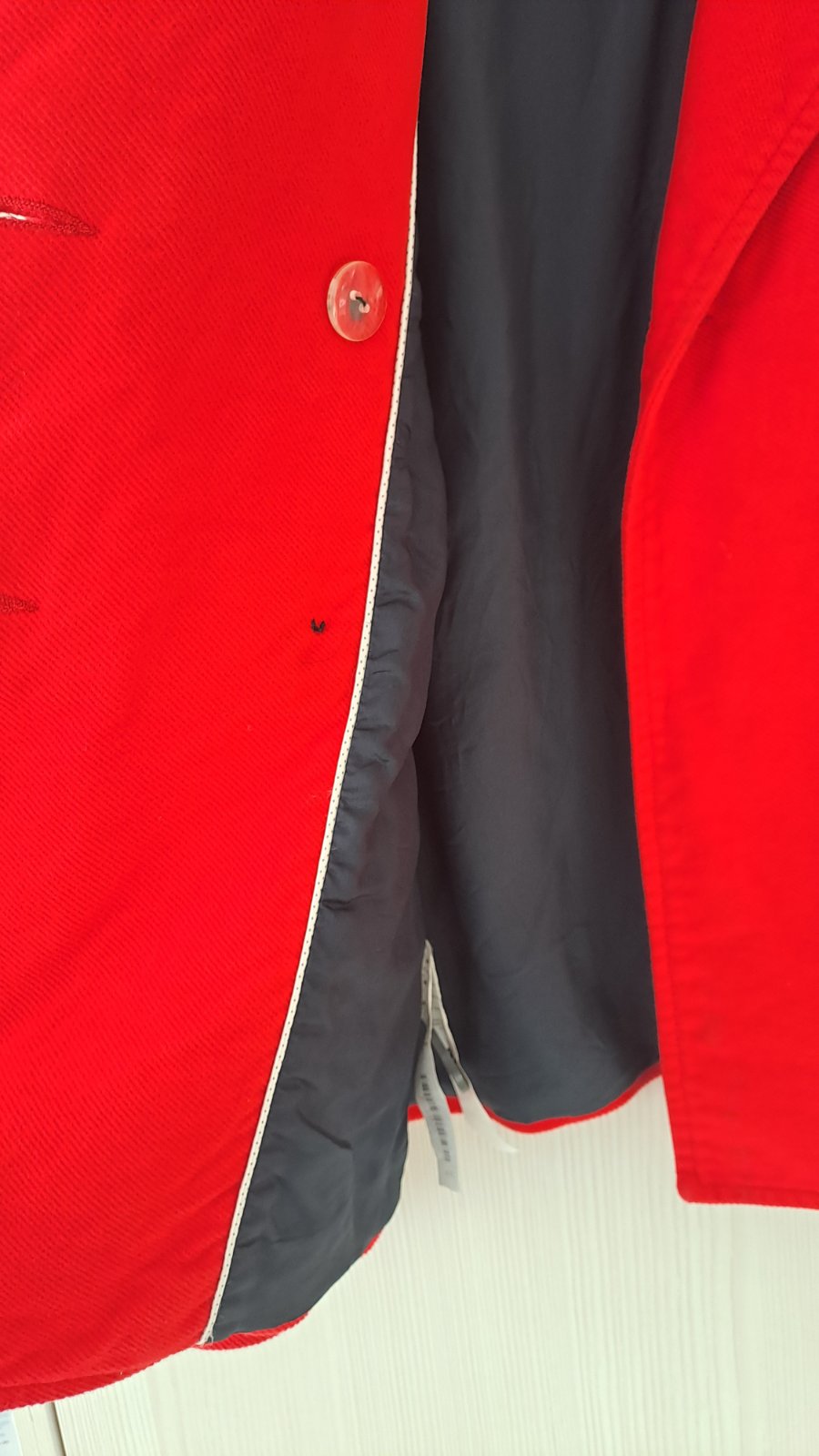 Veľmi pekný kabát, máličko noseny, bez poškodení, bez známok používania. Krásne ukáže na postave. Pekne riešené zapínanie ku krku, z vnútornej strany na veľké cvoky. Na prvej foto je skreslena farb...