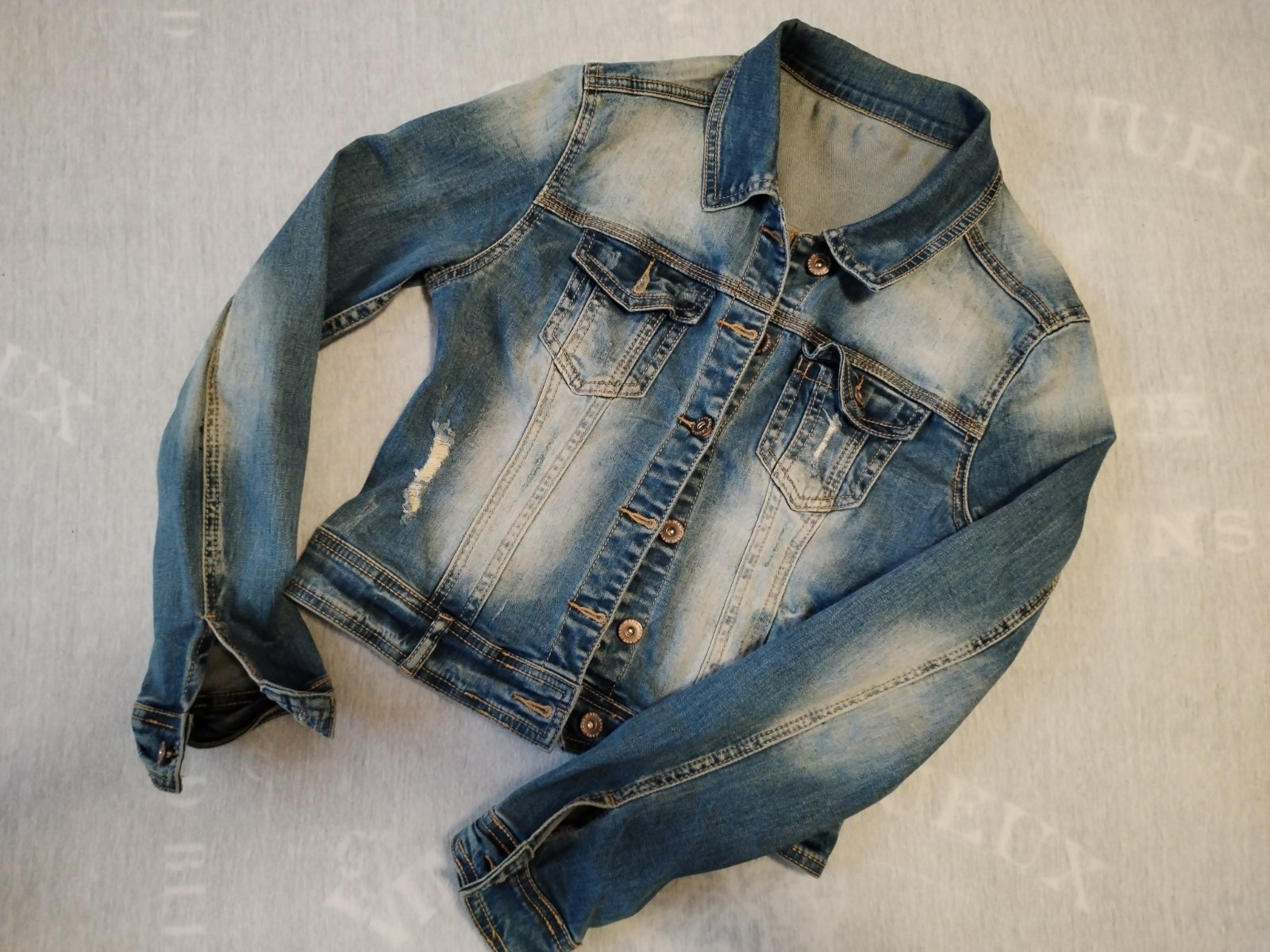 Riflova bunda, klasicka dzinovina bez elastenu. Takmer nenosena. Velkost podla toho ako chcete mat dlha. Ja nosim 38 a bola siper, cize 36 az 40. Kludne zmeriam dlzku-kazdy chce mat inak dlhu.