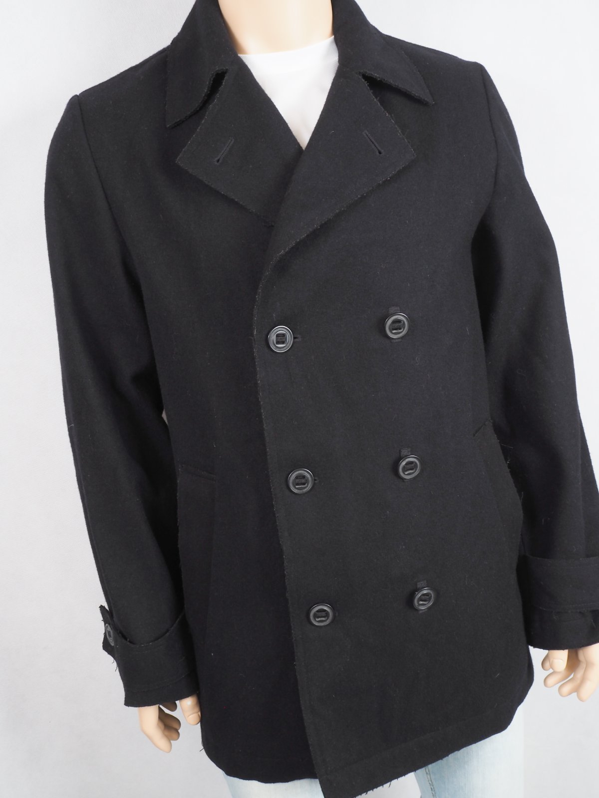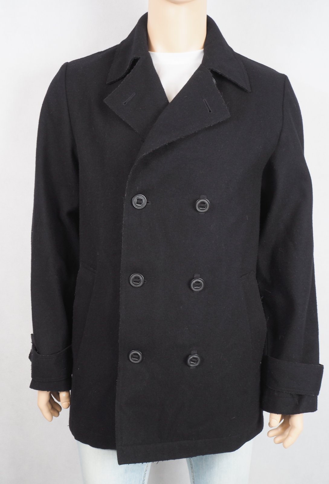 Kvalitný pánske kabát so zapínaním na gombíky v dvojrade, materiál 77% vlna, 13% polyester, 10% viskóza, super stav.