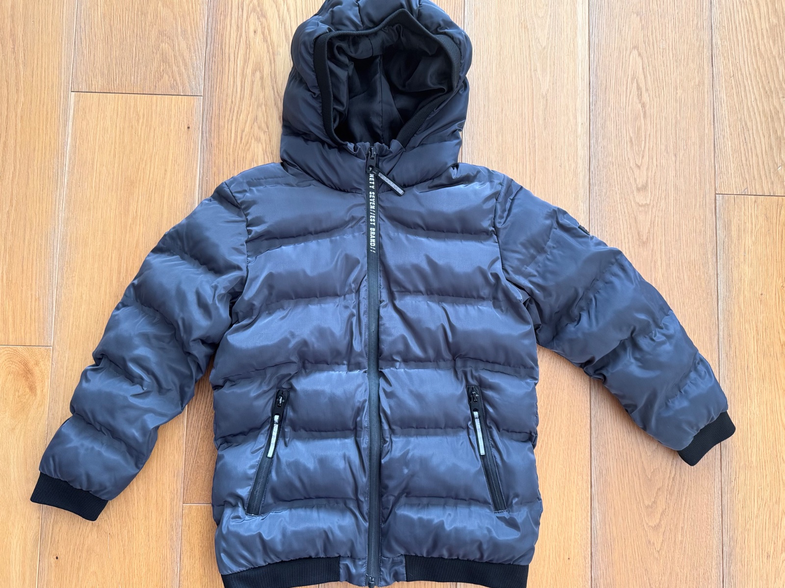 Pekna presivana budna znacky Miniti, vhodna na zimu. Super stav, bez poškodeni. Reflexne pasiky su mierne osuchane.