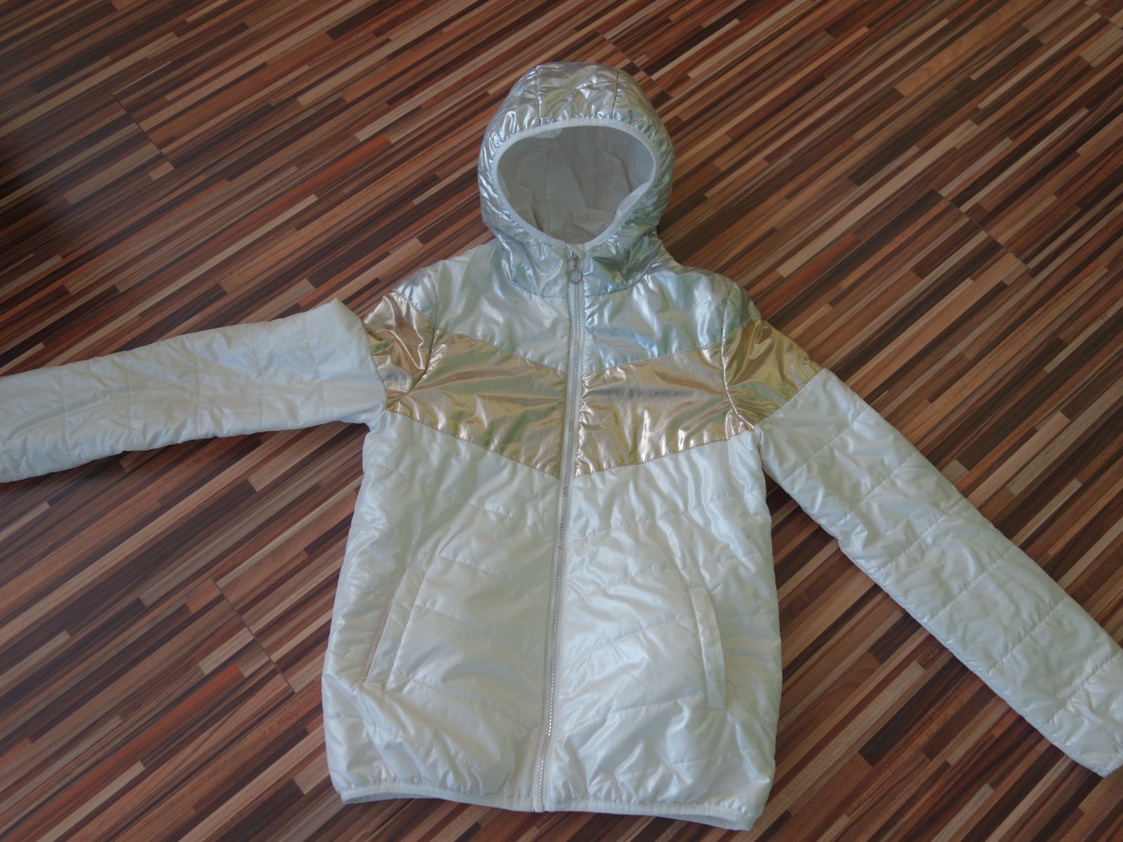 Ponúkam na predaj krásnu jesennú bundu vo veľkosti 164. Bunda je ako nová, vo vynikajúcom stave, takmer nenosená, bez akéhokoľvek poškodenia. Vhodná na prechodné obdobie.
