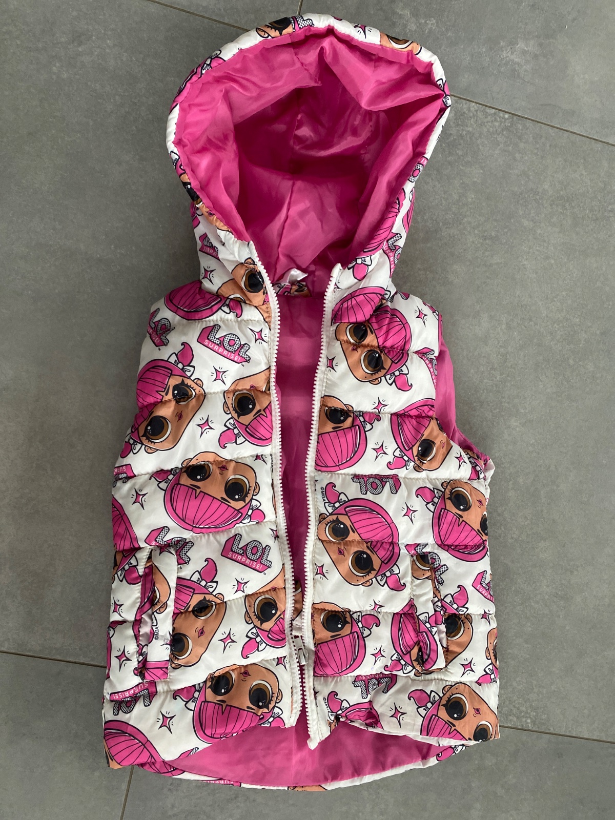 Posúvam teplú vestičku, veľkosť je uvedená 128, ale dieťatko ju obliekalo ako veľ. 116 (bola akurát pod zadok). Žiadne poškodenia.
