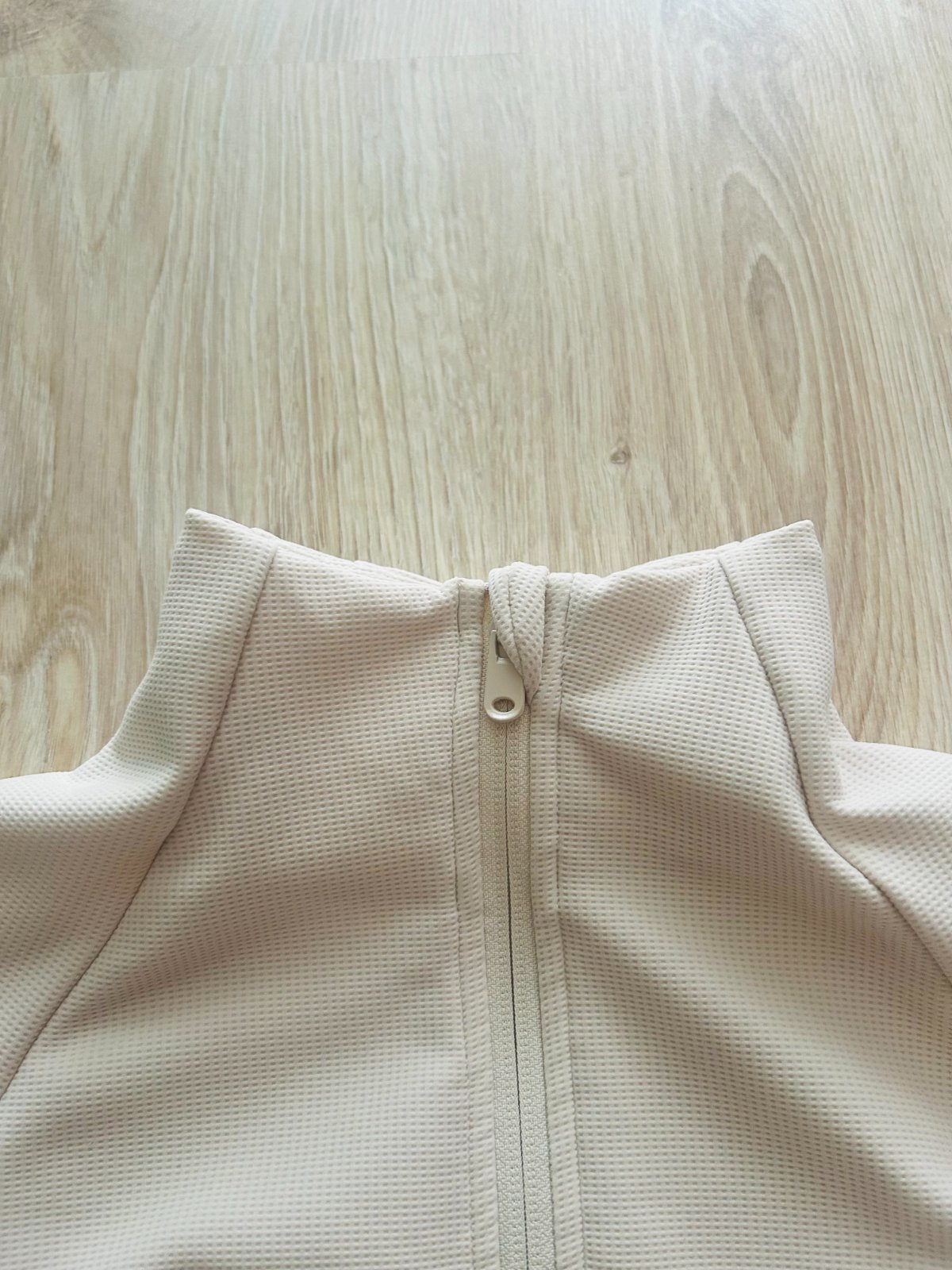 Je to technická bunda s dlhým rukávom so zapínaním na zips. Je vyrobená z priedušnej tkaniny s kontrolou zápachu. Na rukávoch má otvory na palce a na zadnej časti je vrecko s nenápadným vreckom.