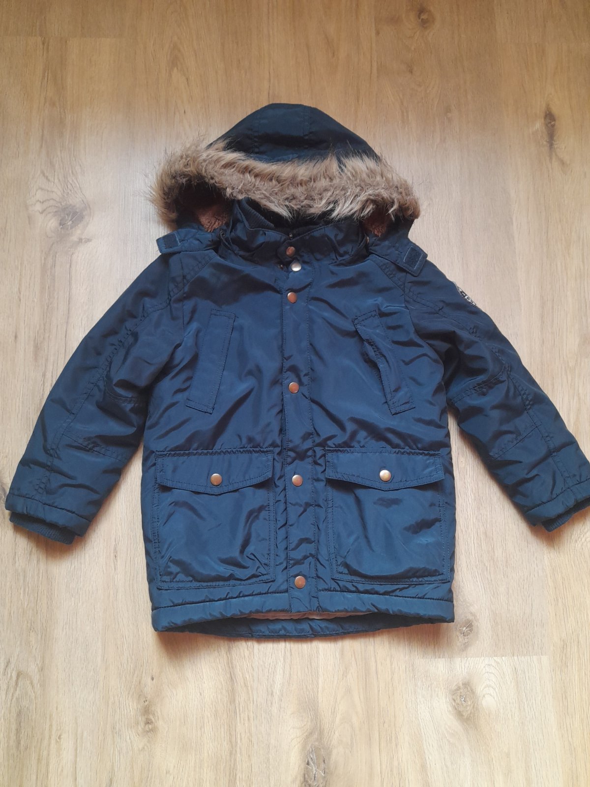 Krásna petrolejová bunda, zvnútra z polovice zateplená kožušinkou