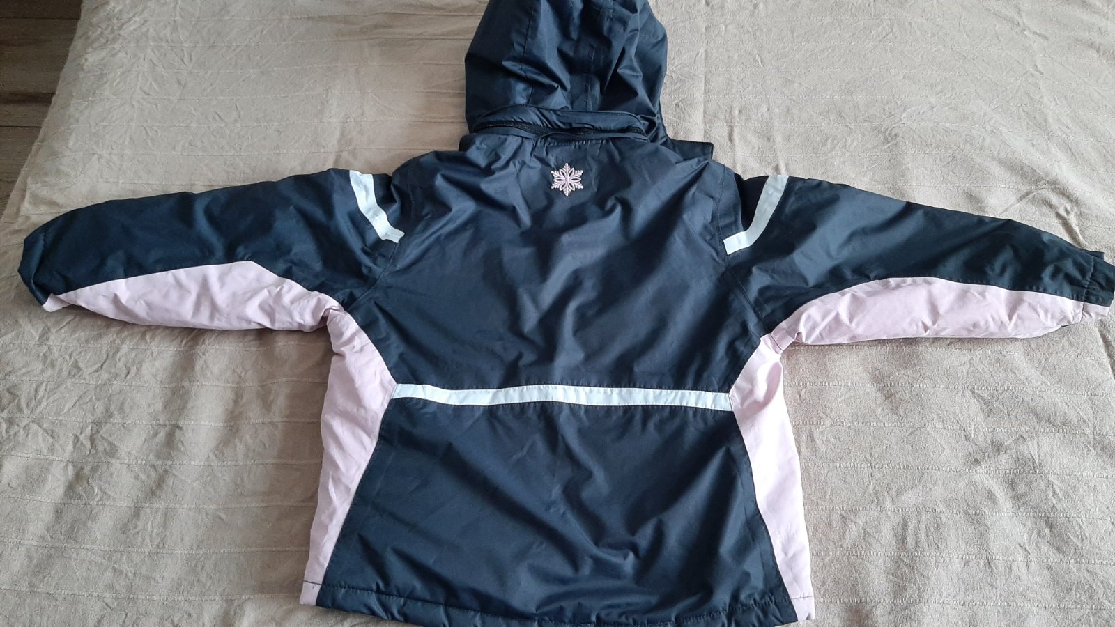Ponukam tmavomodru bundu s ruzovymi bokmi. Odoberatelna kapucna, vrecka na zips, zapinanie na funkcny zips + suchy zips. Mali sme ako rezervnu na vymenu, stale nositelna, bez poskodeni (chyba iba 1 uchyt na zips na lavom vrecku)