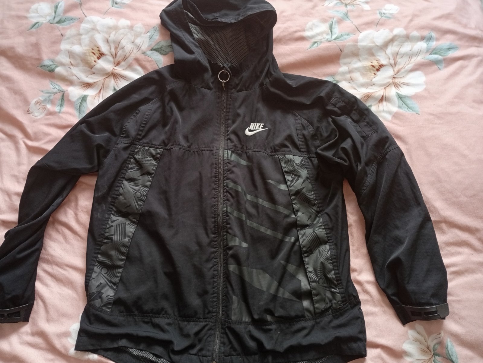Predám športovú tenkú bundu na prechod zn. NIKE č.152/157 na zips s kapucňou,vzadu dlhšia.Malá chybicka z vnut.strany ľavého rukava od farby, neskúšala som vyprať.