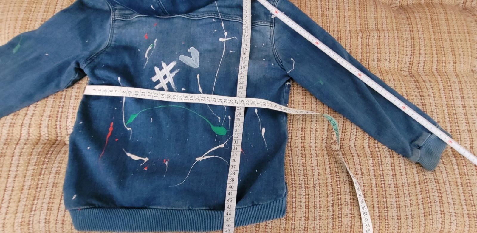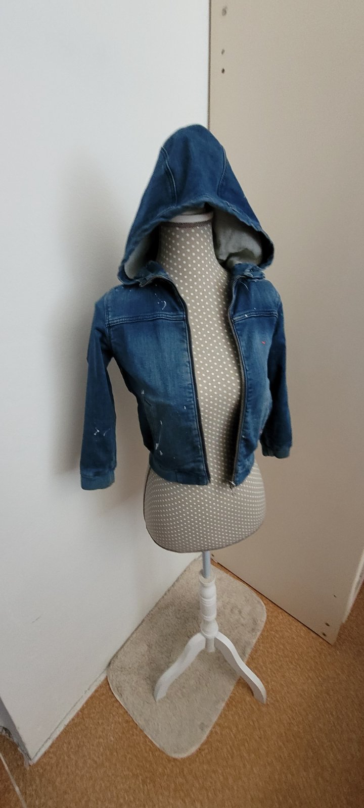 Jedinečná. Nosená - na manžetách trošku vidieť nosenie, ručne maľovaná speciálnymi farbami, po viacerých praniach sa nepoškodí.