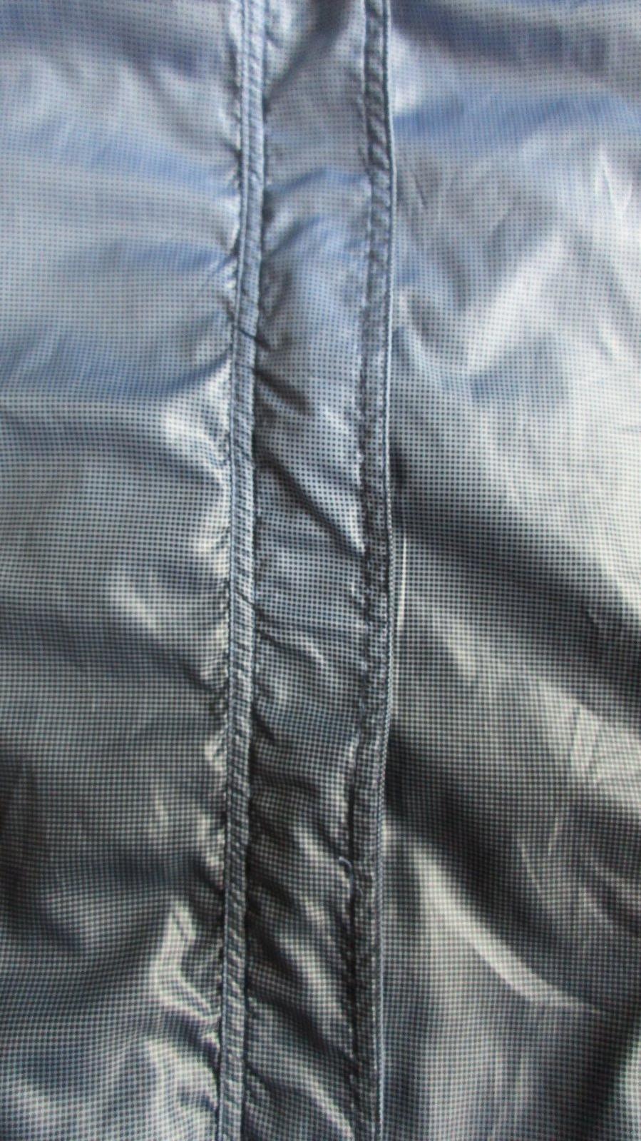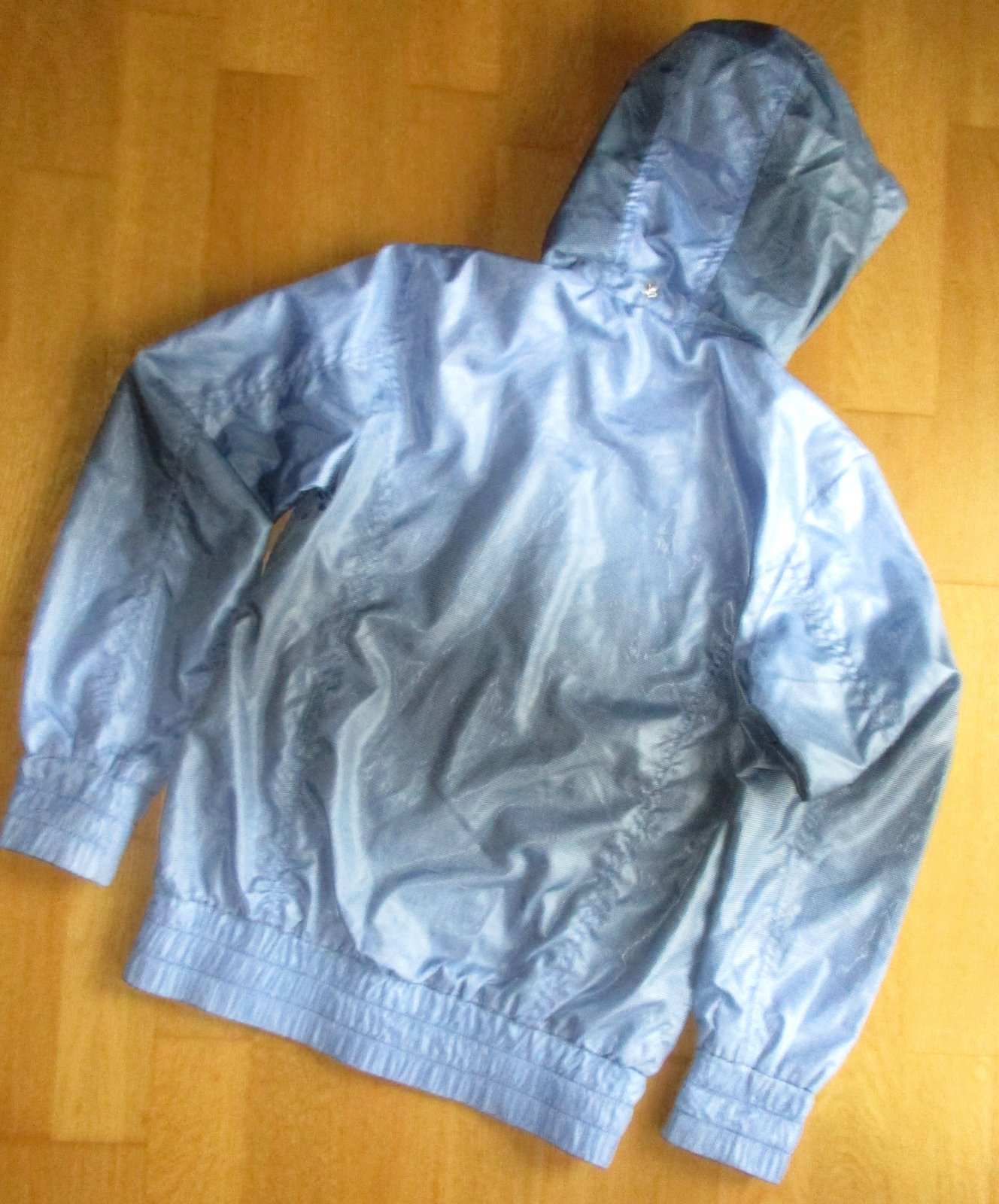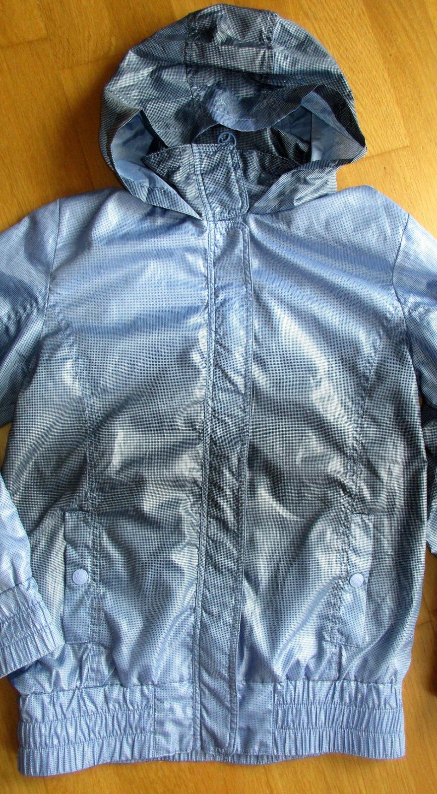 takmer ako nova, malo nosena. Je to sice dievcensky model, ale podla mna moze nosit aj chlapec. Gradient farebny efekt (modra sa prelieva do jemnosivej) na jemnom vzorceku. Tenky sustiak, podsita sietovinou, vrecka zapnute na cvok. Bunda je velmi prijemna lahucka a dobre ukaze. Dlzka od pleca 60,5 cm, rukav od kapuce 68, vratane prieramku aj manzety, sirka pod pazuchou 46 cm, sirka v klude na dolnom patente 38,5, natiahne sa.