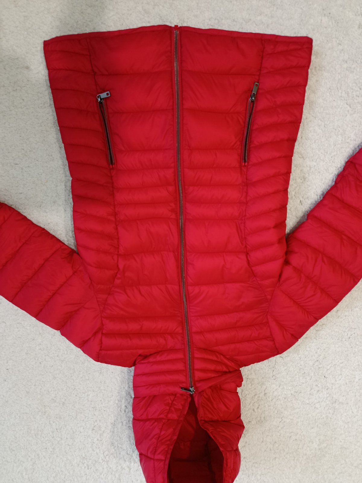Predám krásnu štýlovú paperovú bundičku. Farba je krásna červená, v TOP stave, bez jedinej chyby a poškodenia. Miery: Celk.dĺžka: 57cm Šírka cez prsia: 56cm Dĺžka rukáva od ramena: 63cm + 3cm kožu...