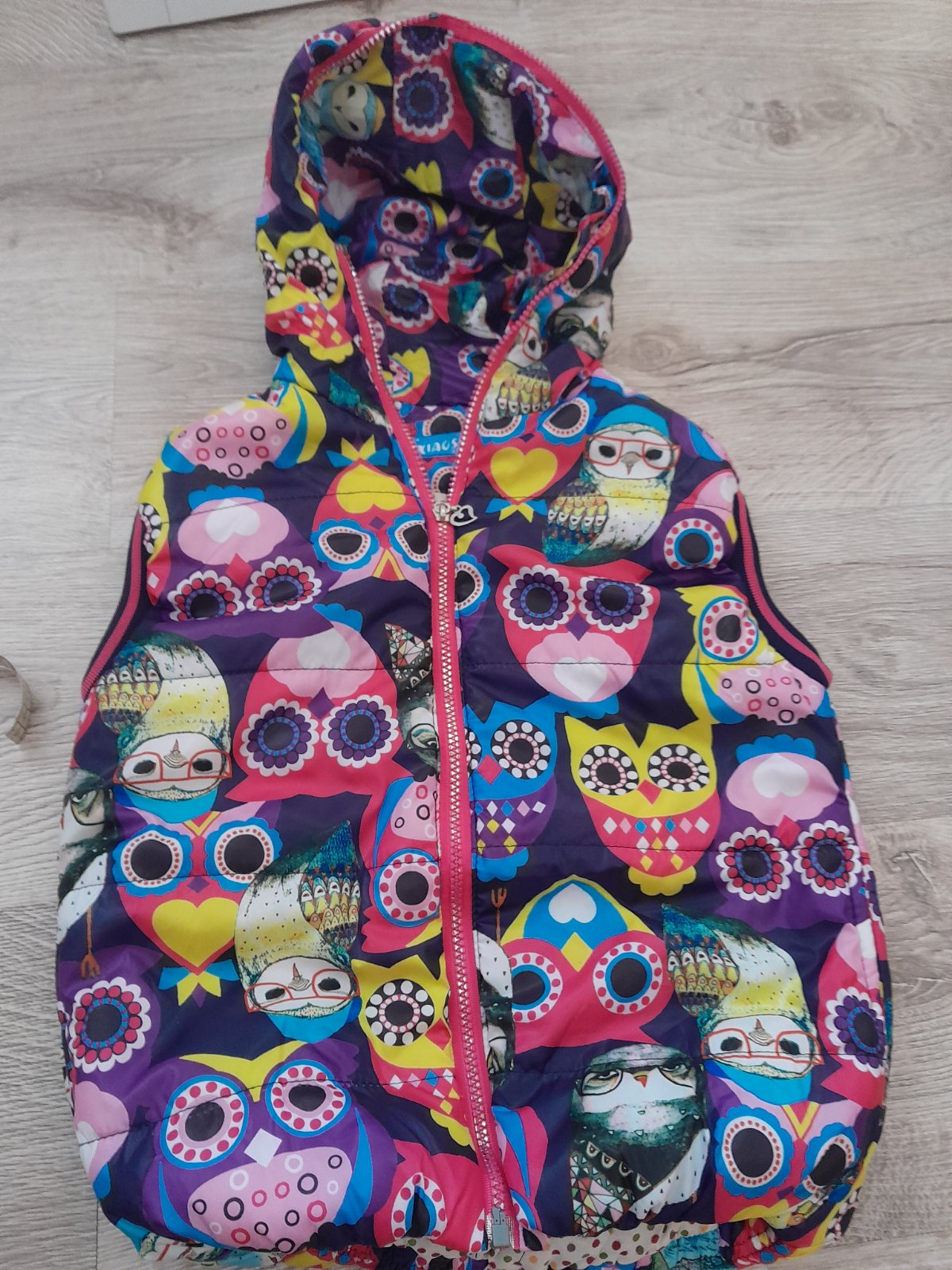 Uzasna neonova taka ruzovo orandzova farba. Ideal pre male deti, aby ich bolo vsade vidno. Vesta ma asi 2-3 fliacky, vid foto. Inak top stav. Stale velmi pekna. Skoda, ze nam je uz mala