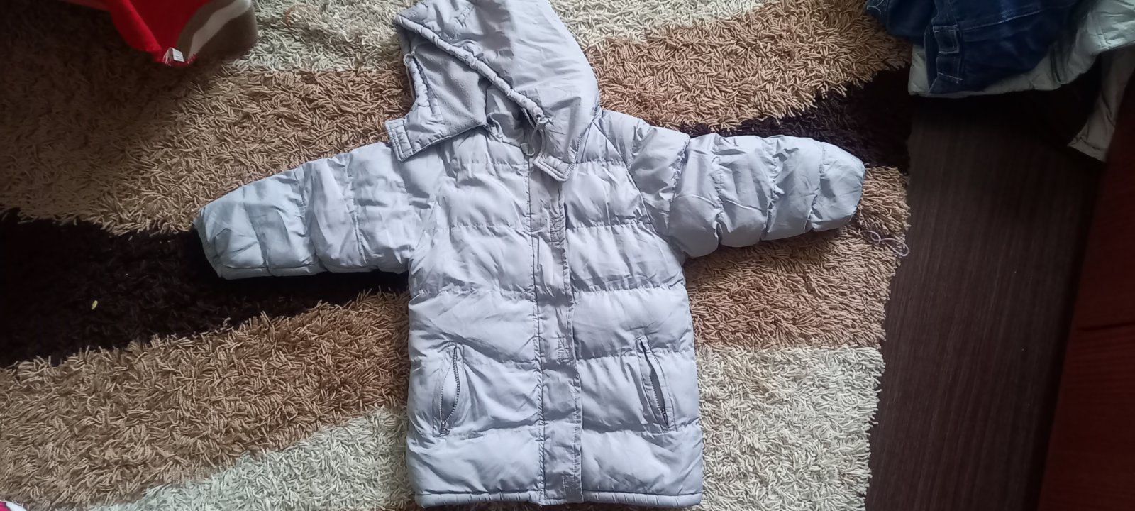 Predám lacno bundičku chlapcensku. Veľkosť 122. Farba šedá.S kapucňou.