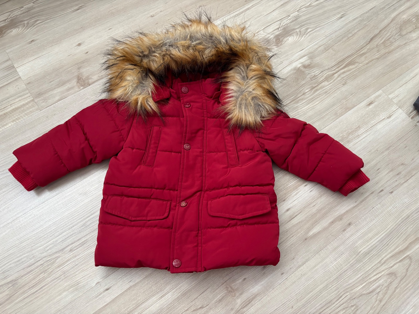 Veľmi teplá bunda s kapucňou. Vnútri teplá flísová podšívka, vrecká na zips, kapucňa je odopínateľná. Málo nosená, v prípade záujmu ochotne premeriam.