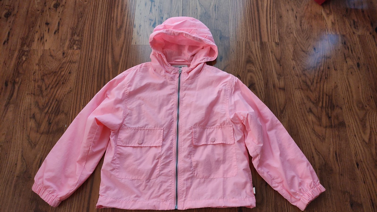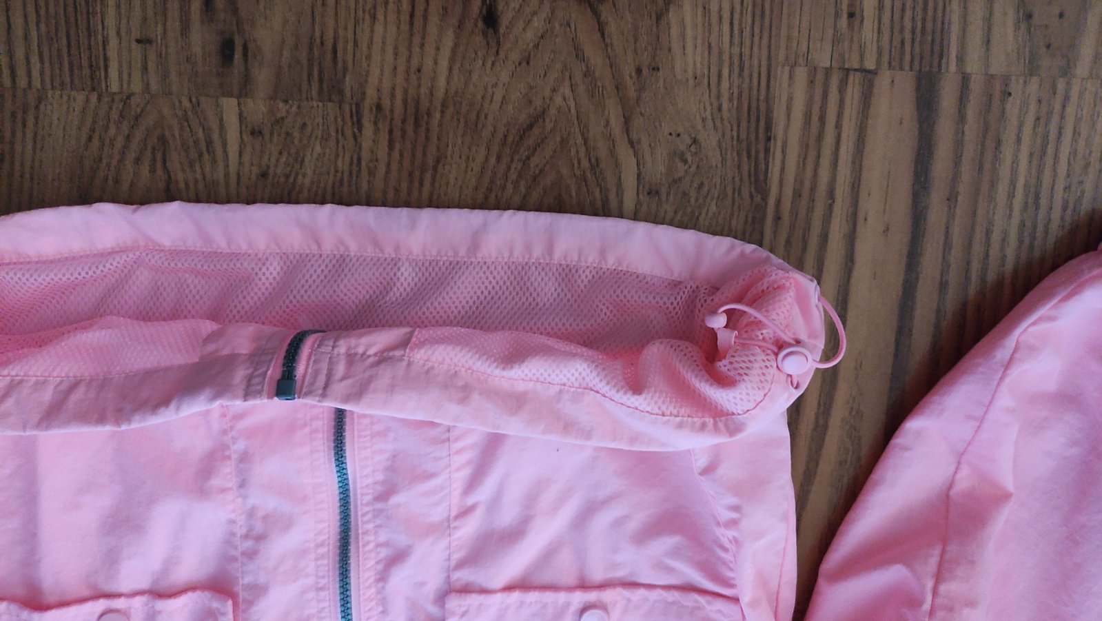 Bez poškodení a fľakov, neónovo ružová farba, len odskúšané, v spodnej časti sa dá stiahnuť, dĺžka 53cm, šírka v podpazuší 49cm, rukáv od kapucni59cm.