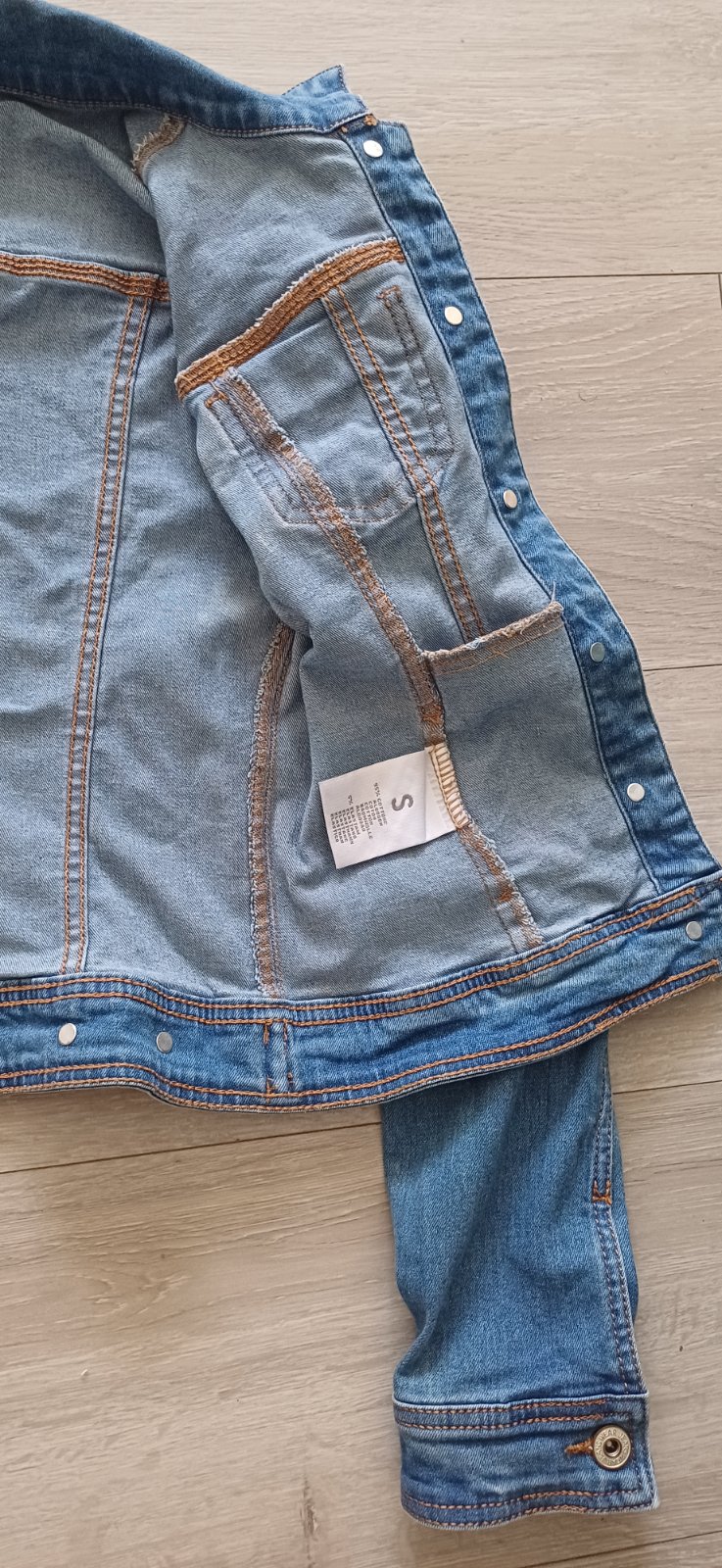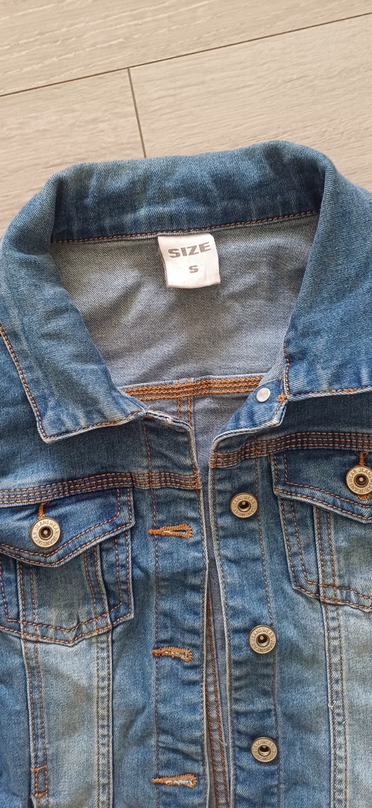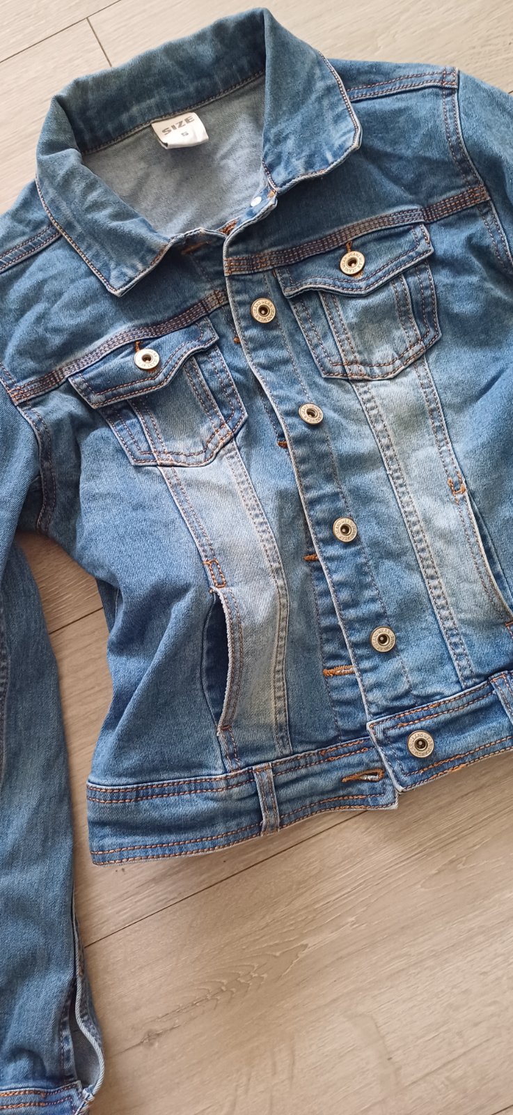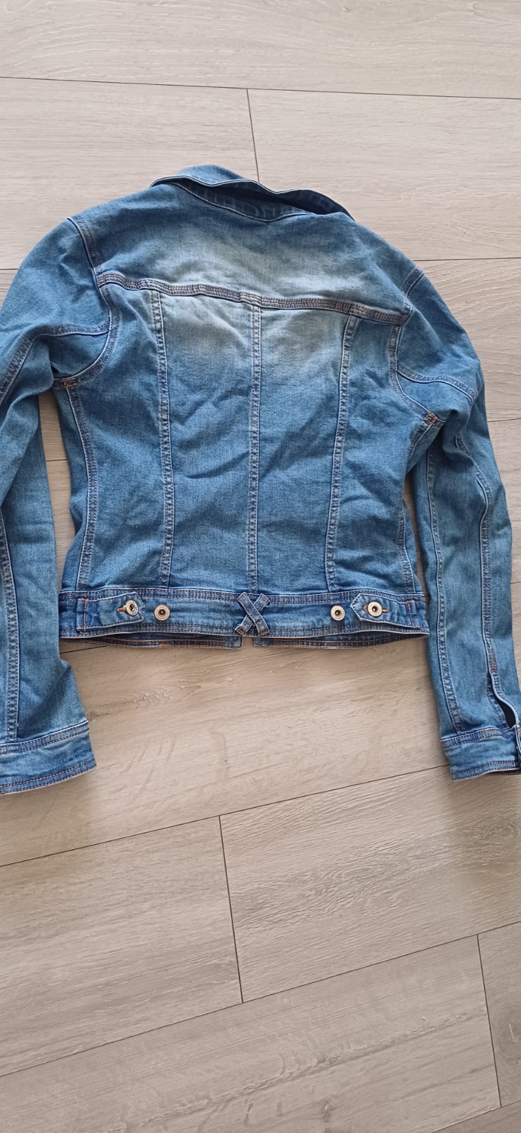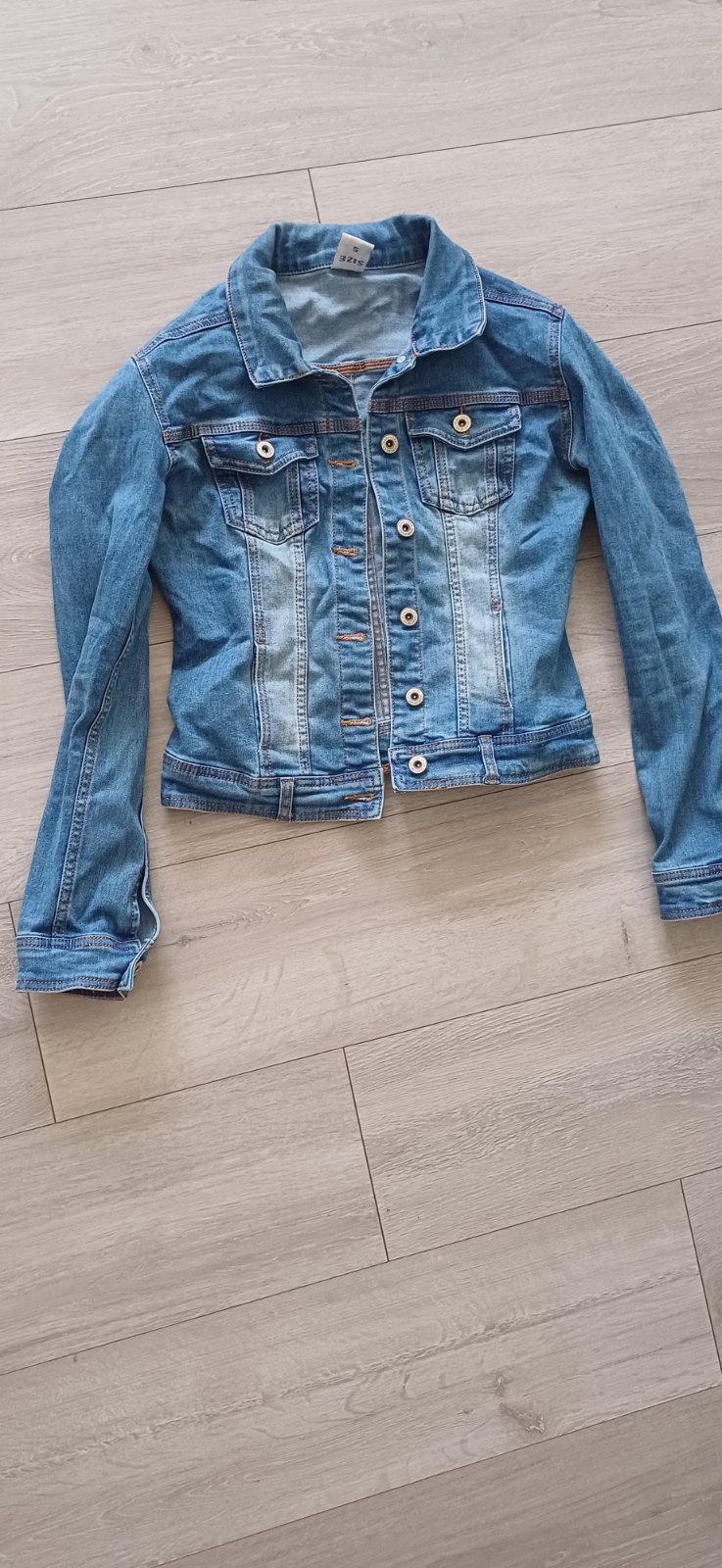 Modra vetrovka podšitá bavlnou, veľkosť písaná S ale je taká menšia.