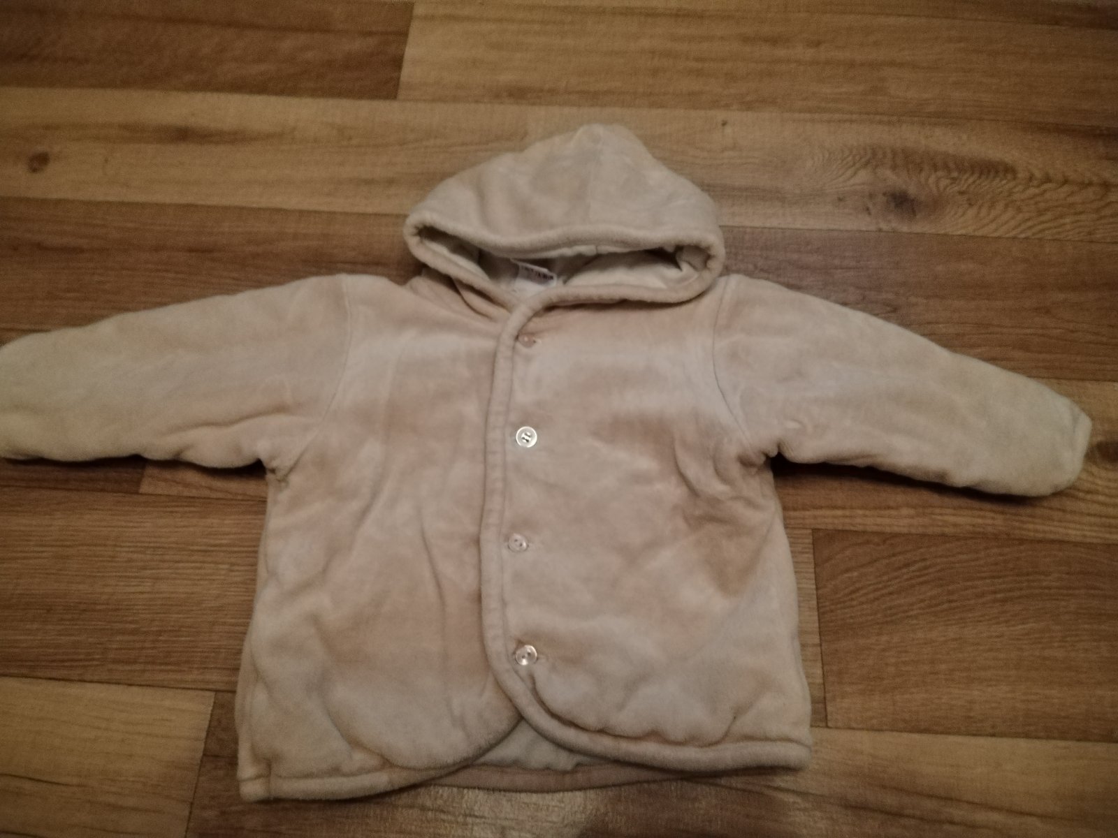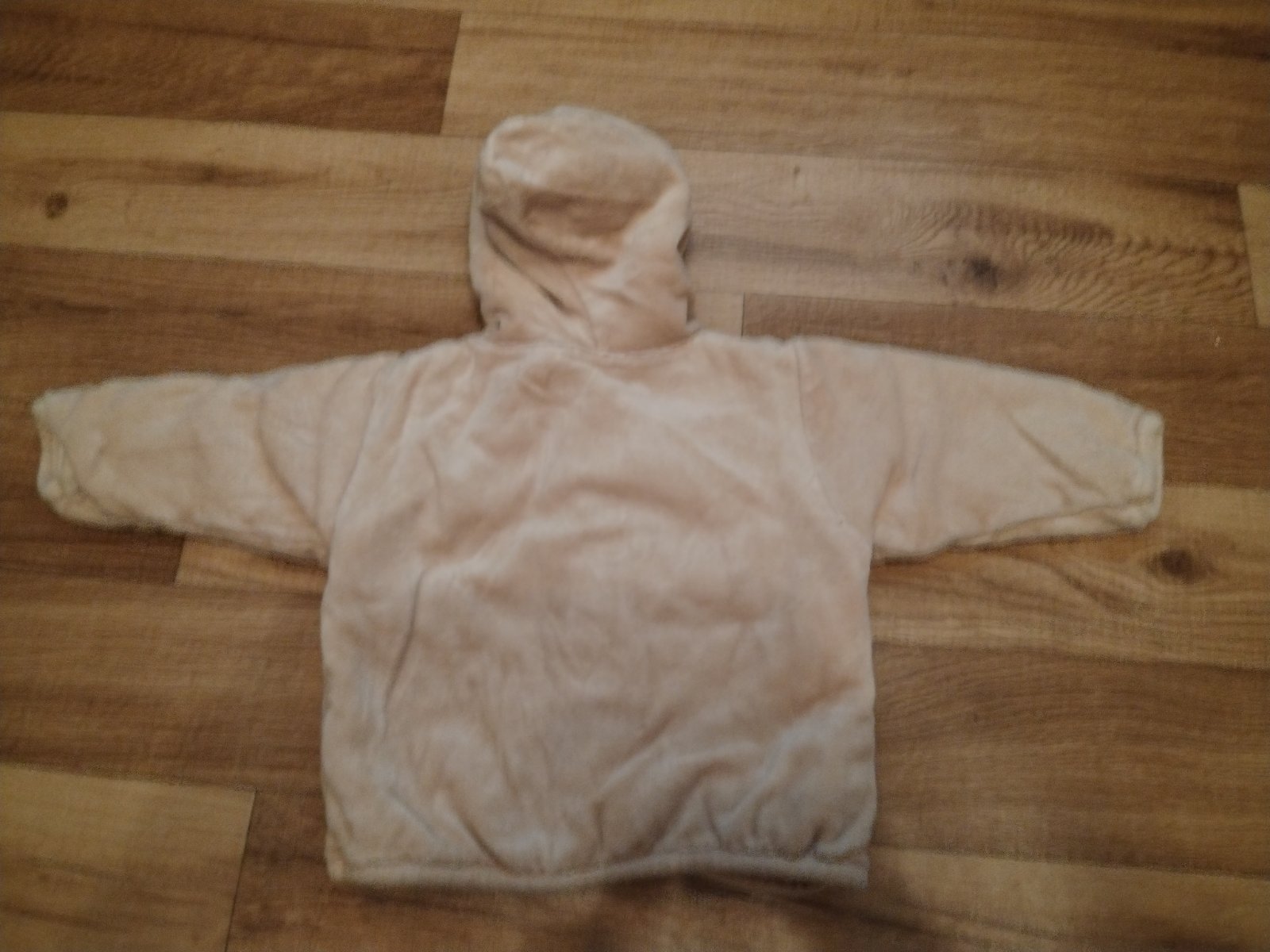 Bezova bunda - malo nosena, top stav. Sirka 2x33cm, sirka chr.sedla 28cm, dl.chrbta 36cm, rukav od pleca 23 a od podpazia 16cm. Bunda vyteplena fleecom. K tomu nenosena suprava next- ciapka sale ru...