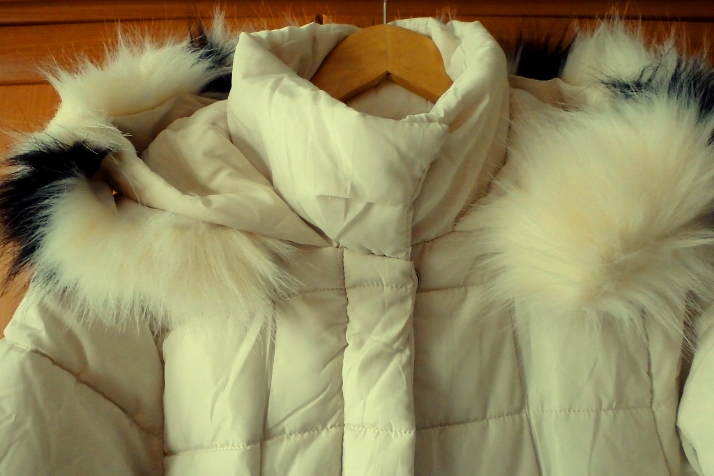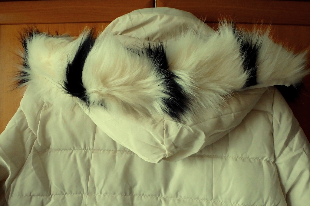Kapucňa je napevno, kožušinka sa dá dať dole, je pripnutá drobnými gombičkami.