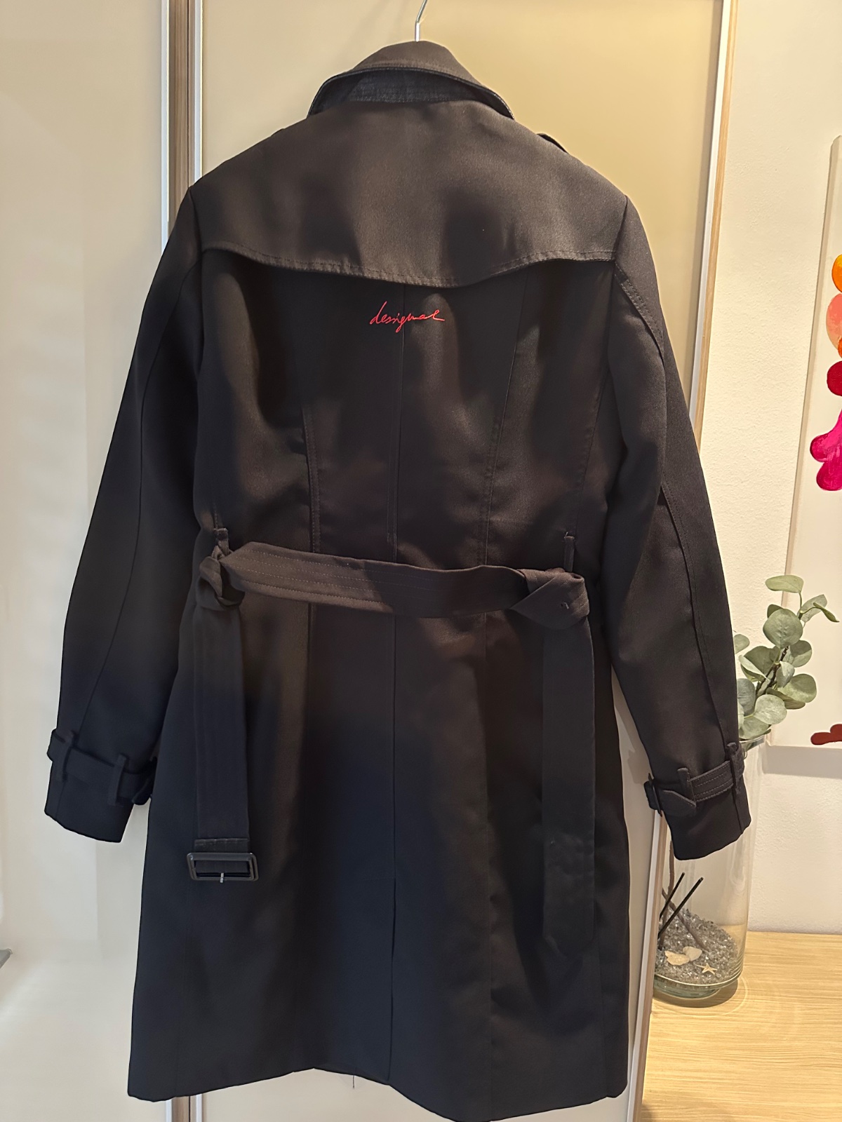 Krasny trenčkot-plášť v top stave, ako nový. Farba je čierna kvety farebné.