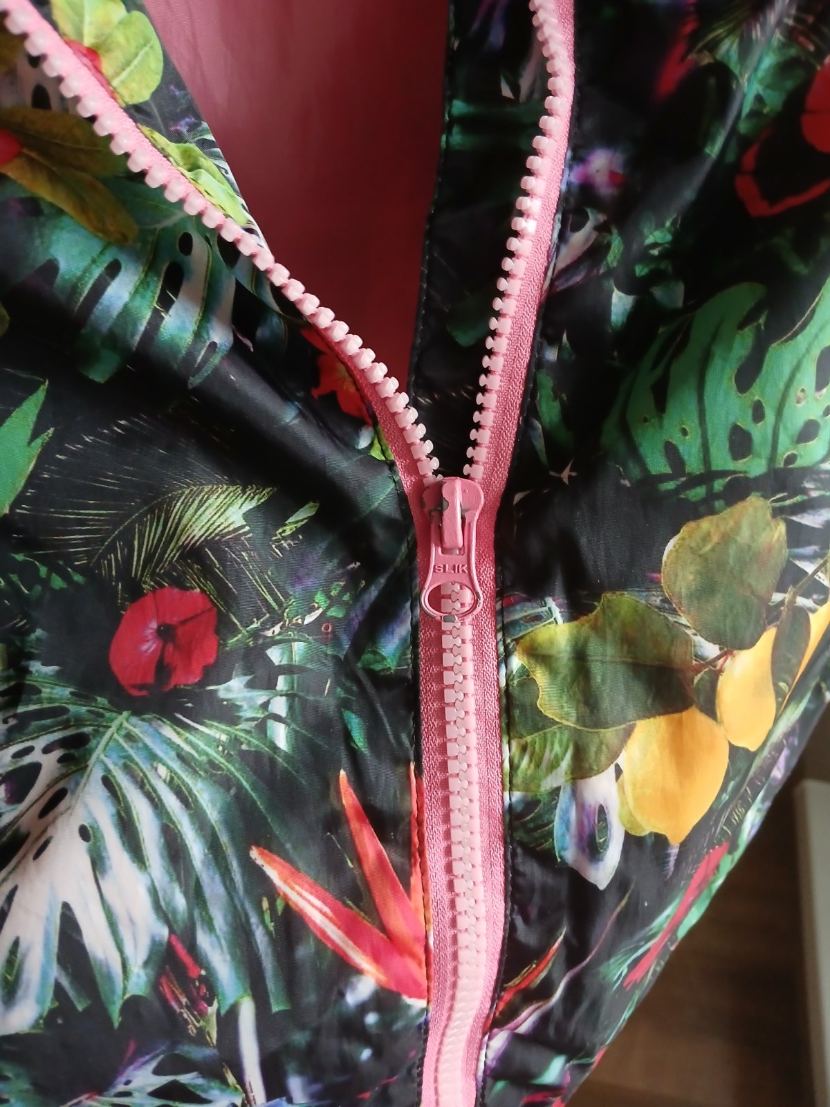 Krásny jarník bez dier či fľakov ,je na zips ,dĺžka-70cm ,šírka pod pazuchami 2x 45 cm ,v pase je gumička , rukáv od krku-56,5 cm