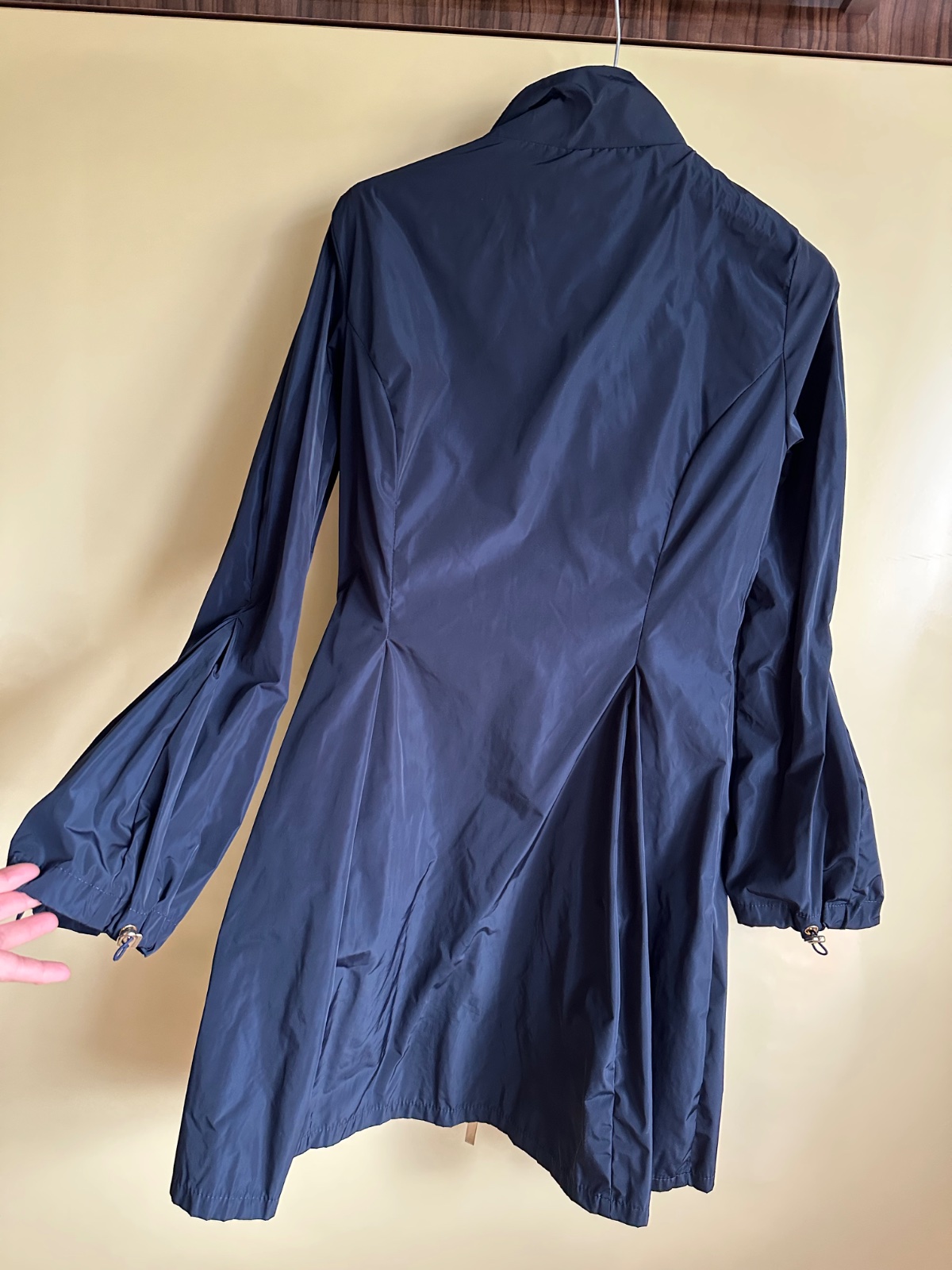 Krásny plášť, trenčkot, nádherný strih, rukávy rafinovane rozšírené-možnosť stiahnuť rukáv šnúrkou(gumičkou-viď fotka). Nádherný, povodná cena vysoká. Nenosený a už maly.