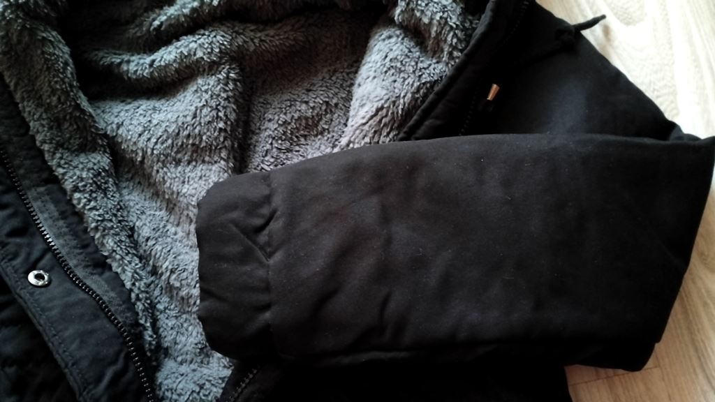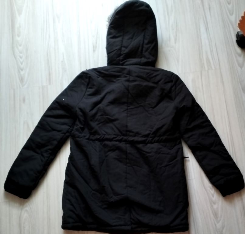 Zapína sa na zips a cvoky, má vrecká, kapucňa je napevno, v páse je sťahovacia šnúrka.