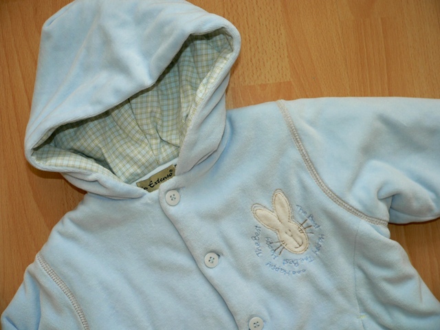krasna a makulinka sametova bundicka InExtenso, s nadhernou aplikaciou zajacika, v nej bude dietatko ako v bavlnke. Raz oblecena asi na 5 min, bez chyb. Na foto extra neukaze, ale v skutocnosti je ovela krajsia. Je zateplena polyesterovym vlaknom a podsita bavlnenym upletom, kapucka podsita karovanou latkou, do kocika idealna na zahriatie. Na bundicke je pisana velkost 12 m., ale je vacsia, preto udavam v. 92. Da sa teda ponosit uz od 86 s vyhrnutym rukavikom a vydrzi .. Rukav od kapuce 40,5 cm, dlzka od pleca 41