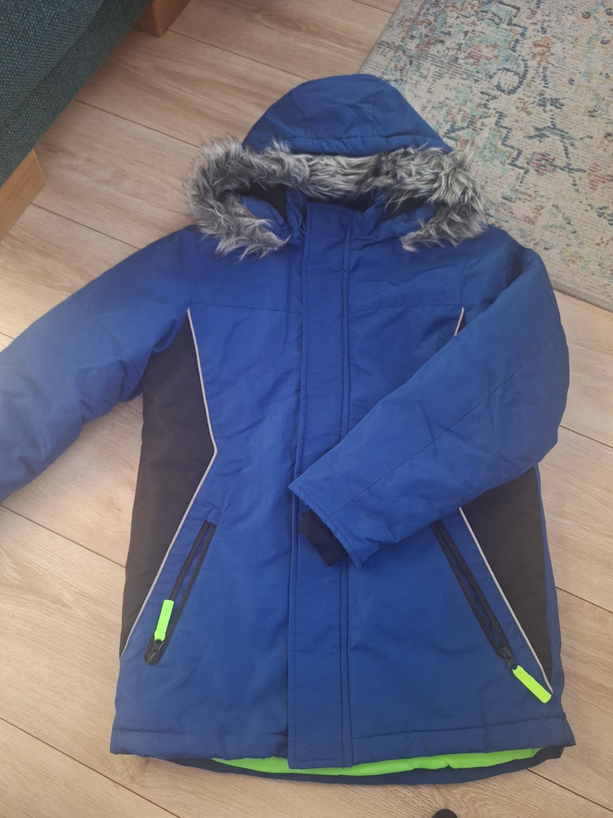 Chlapčenská bunda, v bezchybnom stave, veľmi málo nosená, vhodná aj na zimu ale vhodná aj na prechod (jar, jeseň) - skladá sa z bundy a z flisovej bundy, spolu spojené zipsom, reflexné prvky, má aj...