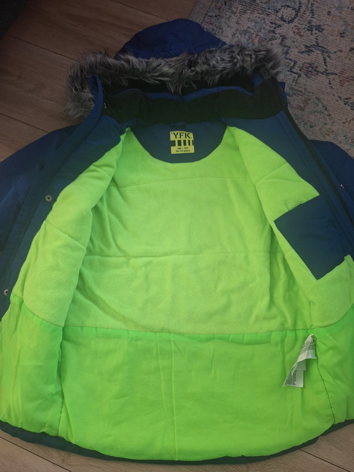 Predám nosenú bundu v zachovalom stave, kupené v Poľsku.veľkosť146/152, celková dlžka 60cm, širka 49cm.