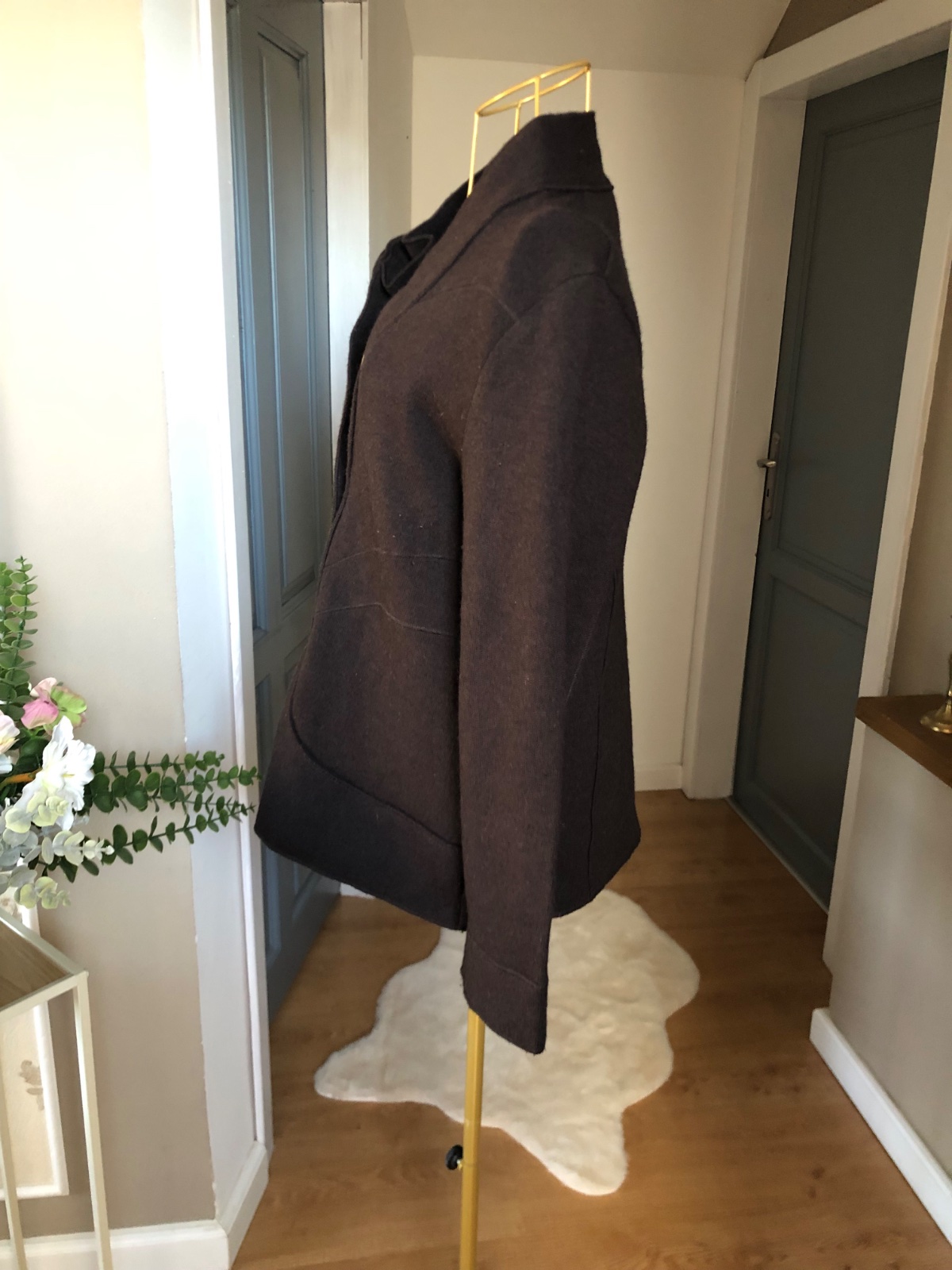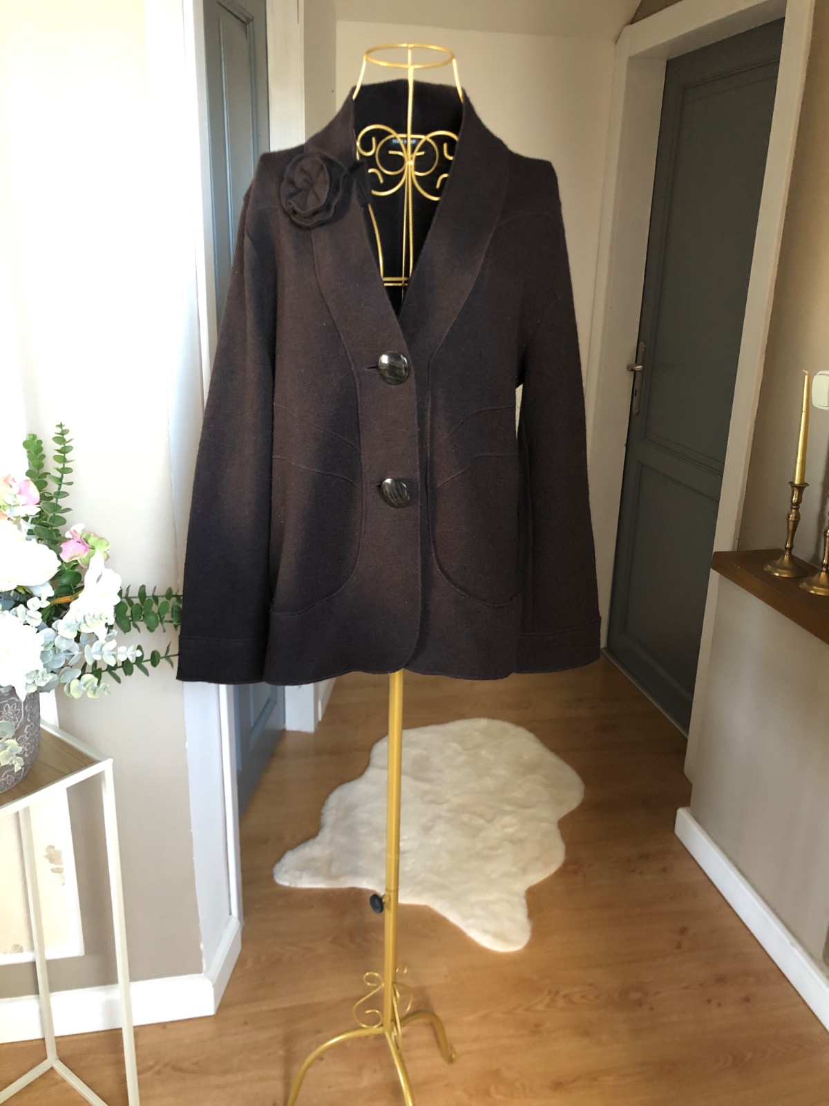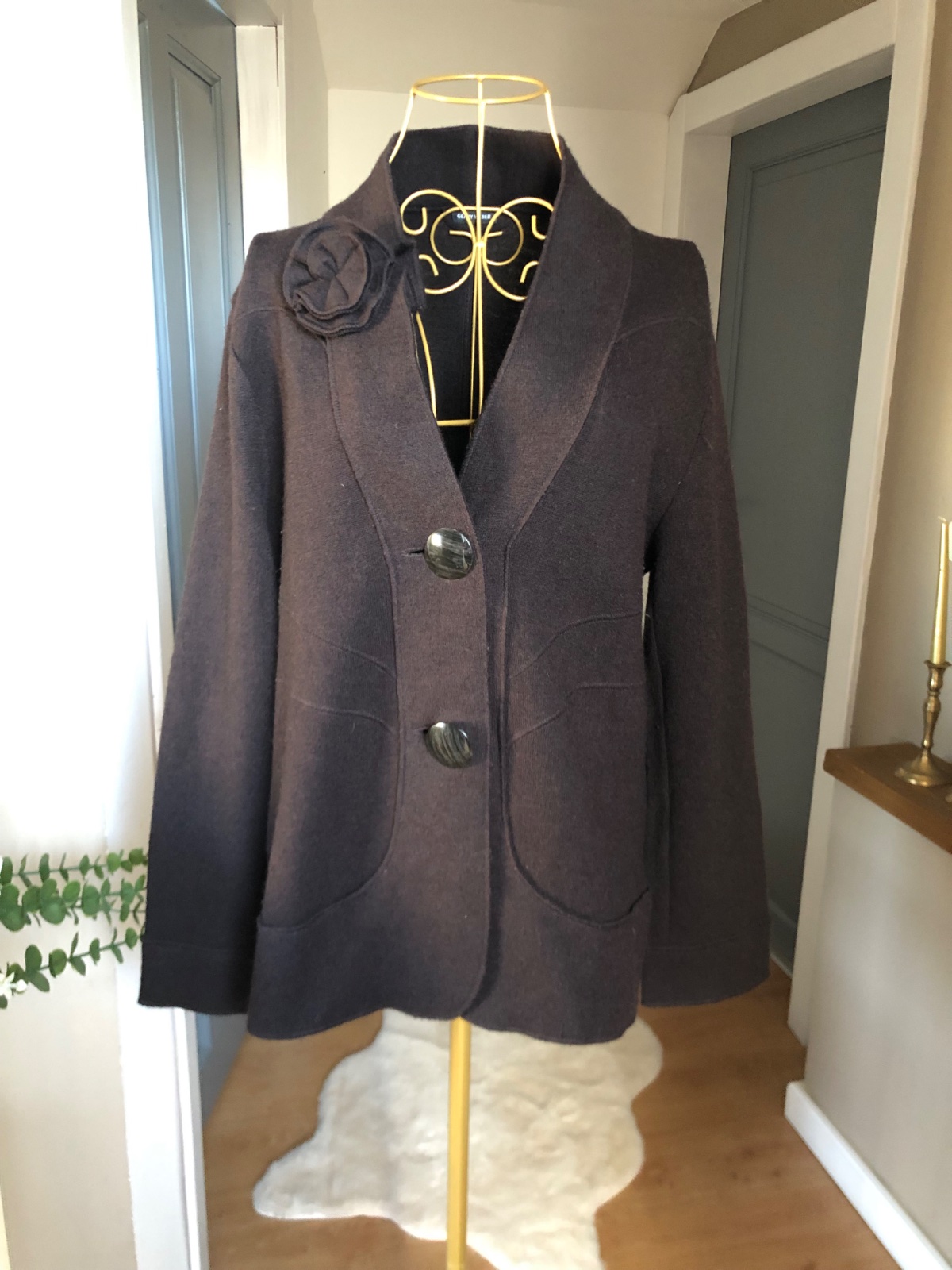 Luxusný vlnený blejzer so zapínaním na gombíky, bez podšívky, vypracovaný do detailov, materiál úpletový, super stav.