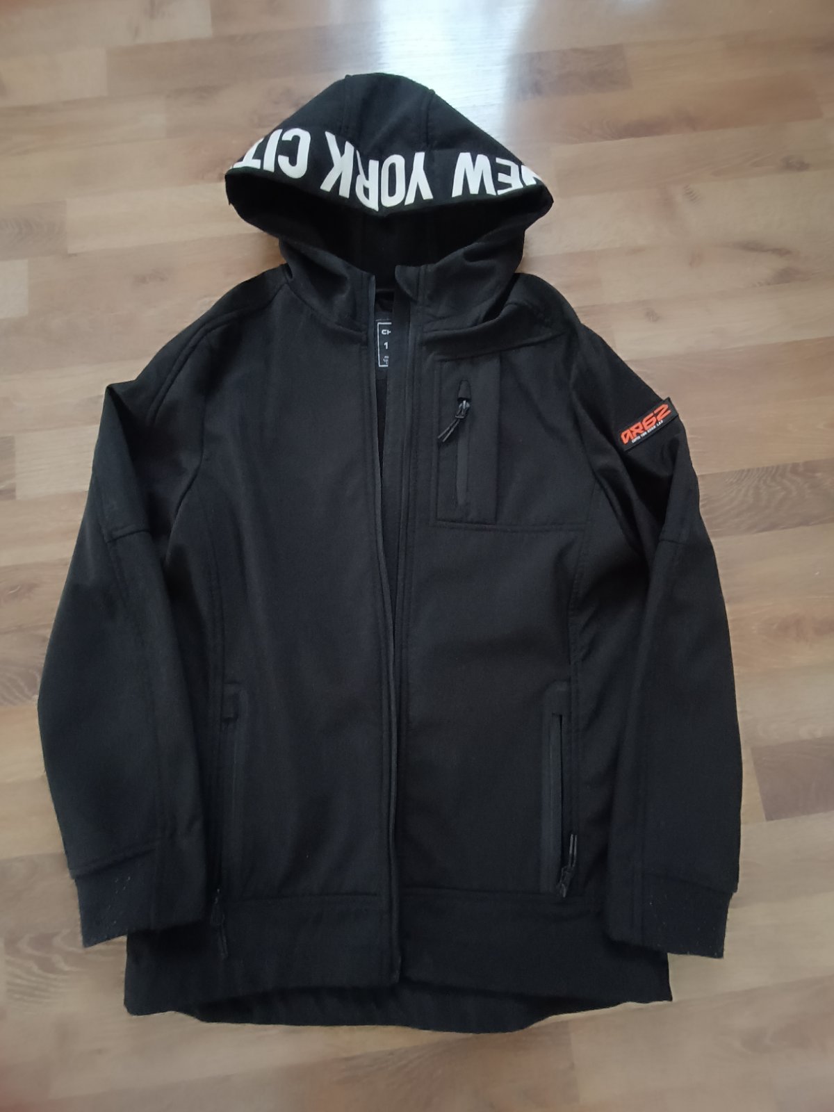 Nepremokavá prechodná bunda, na zips, s kapucňou. Veľkosť 158/164