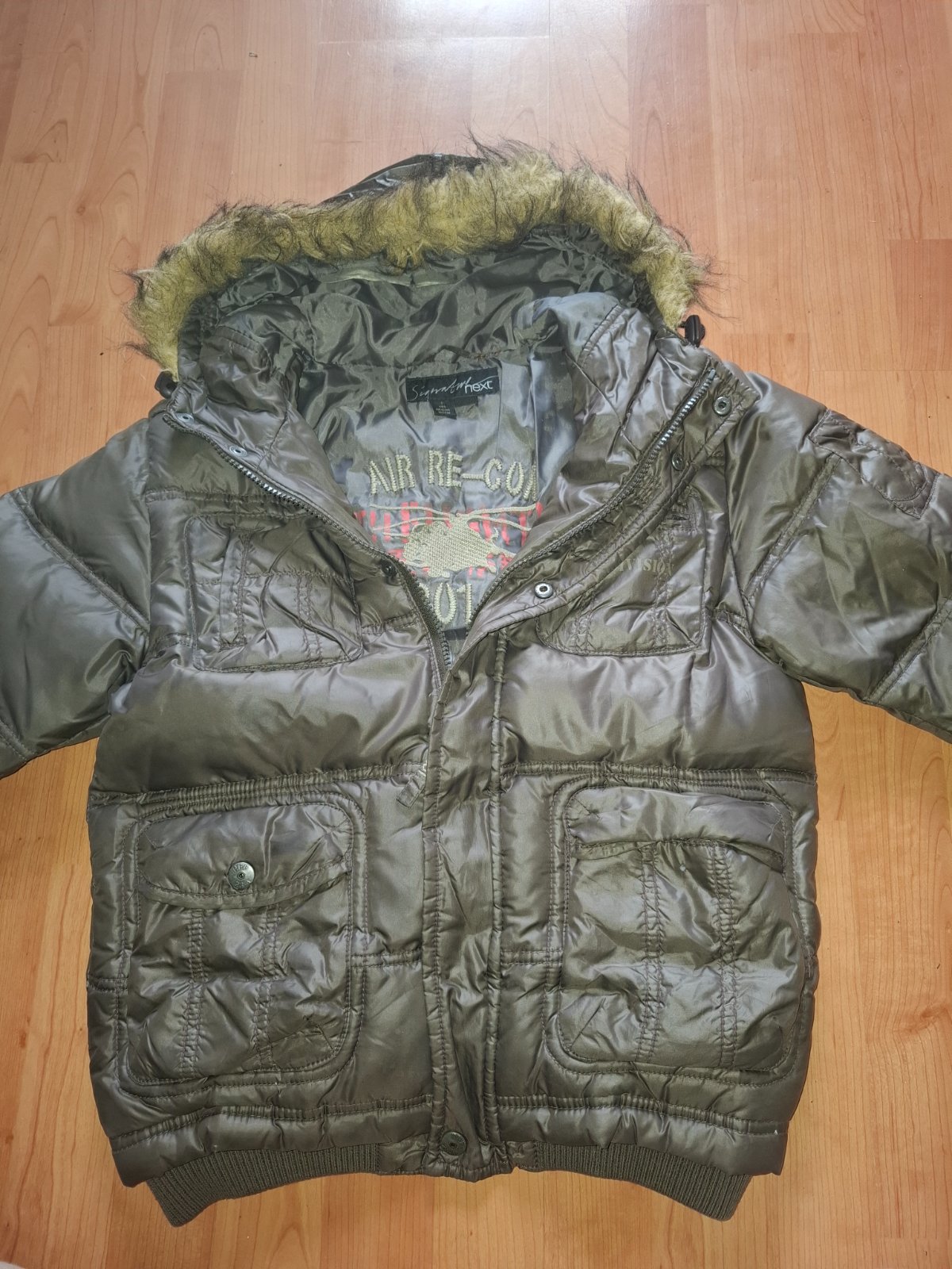Chlapčenska bunda veľ.122 rozmery šírka 46x2cm dĺžka 55cm.Na rukáve malá dierka