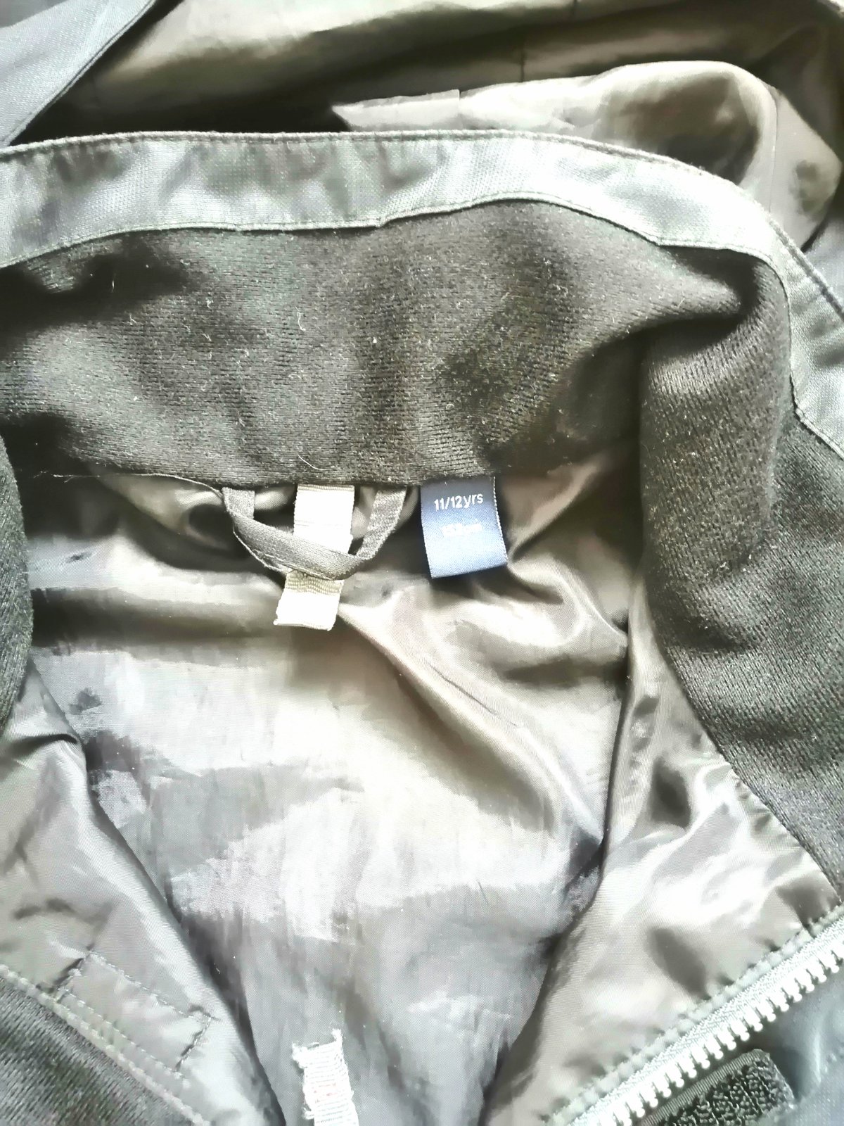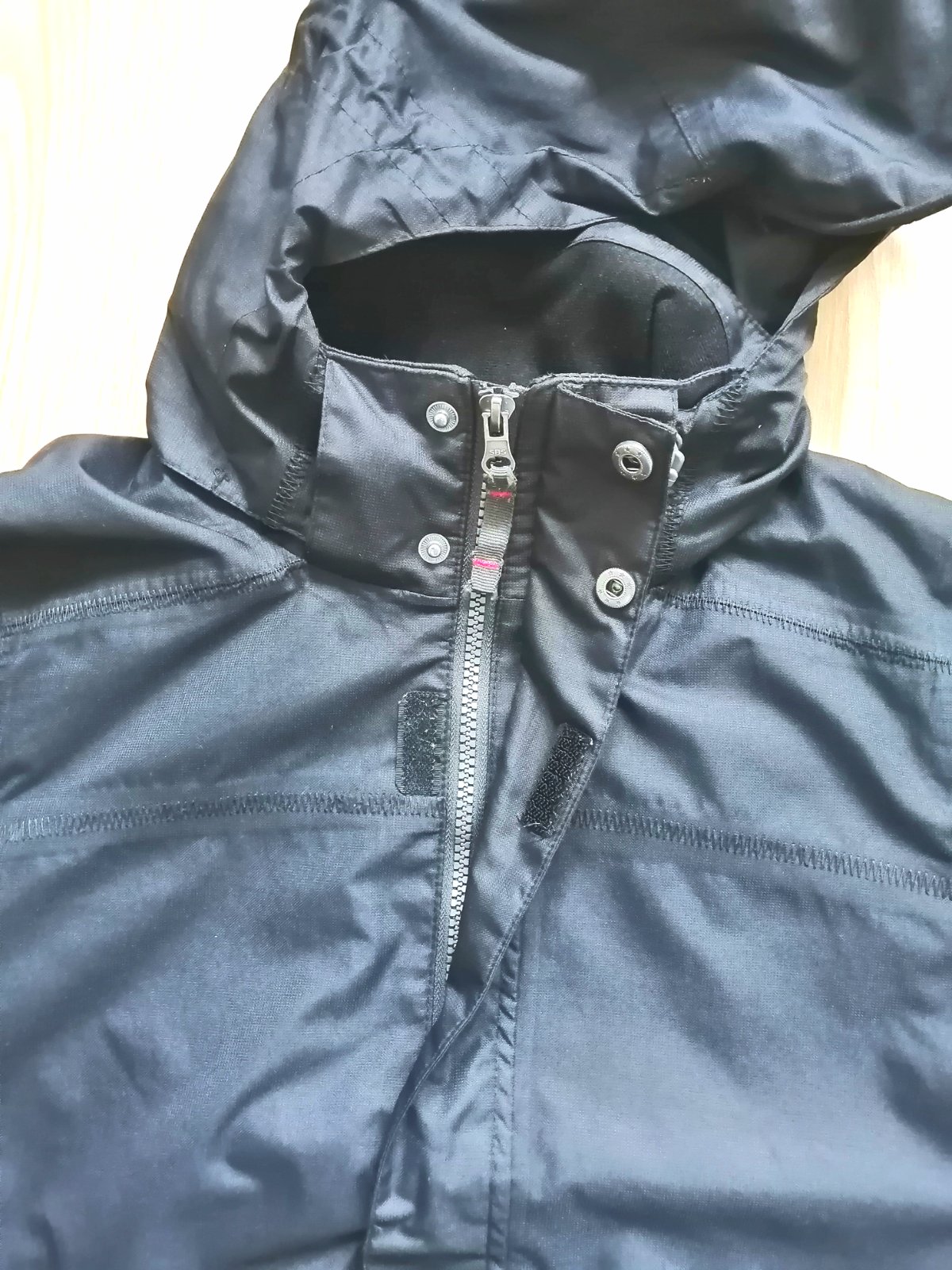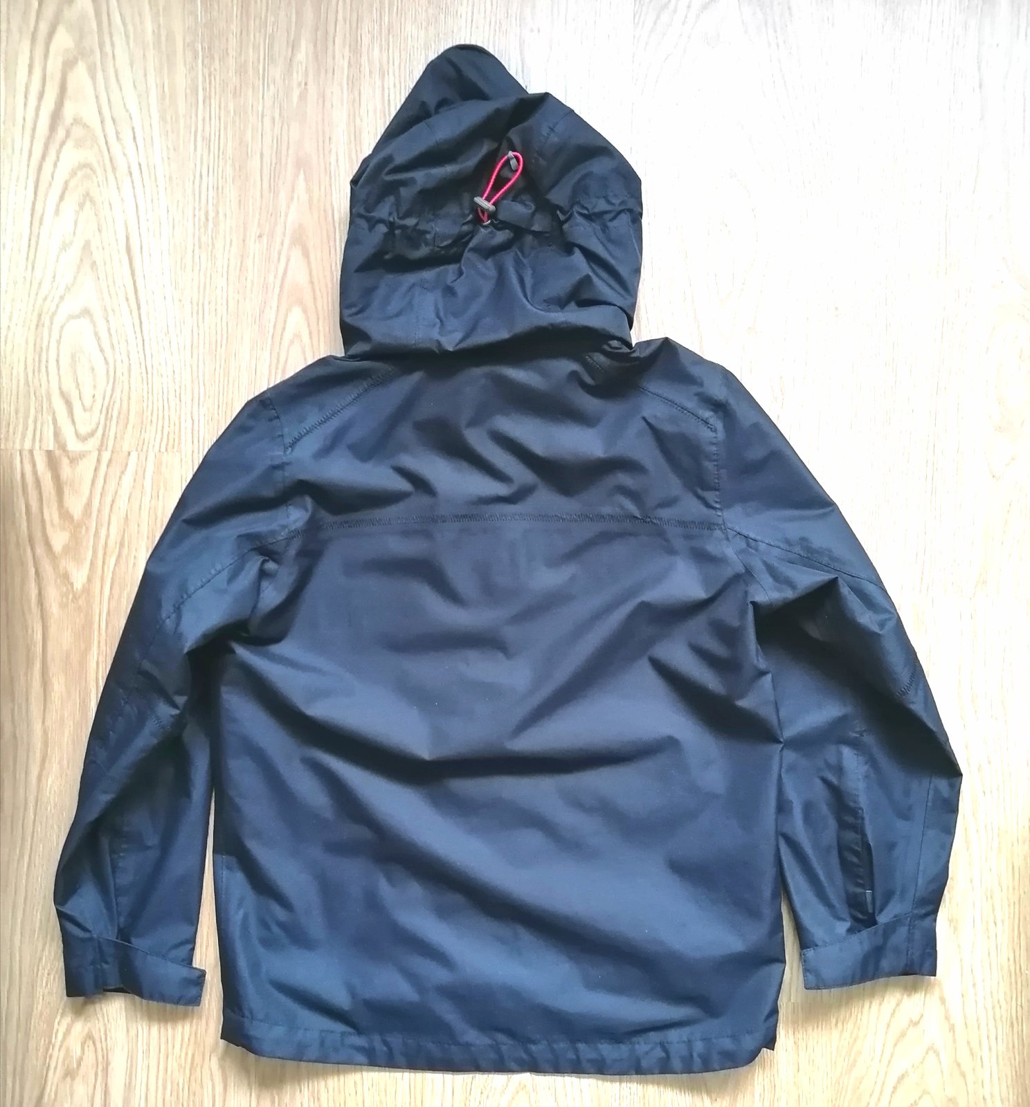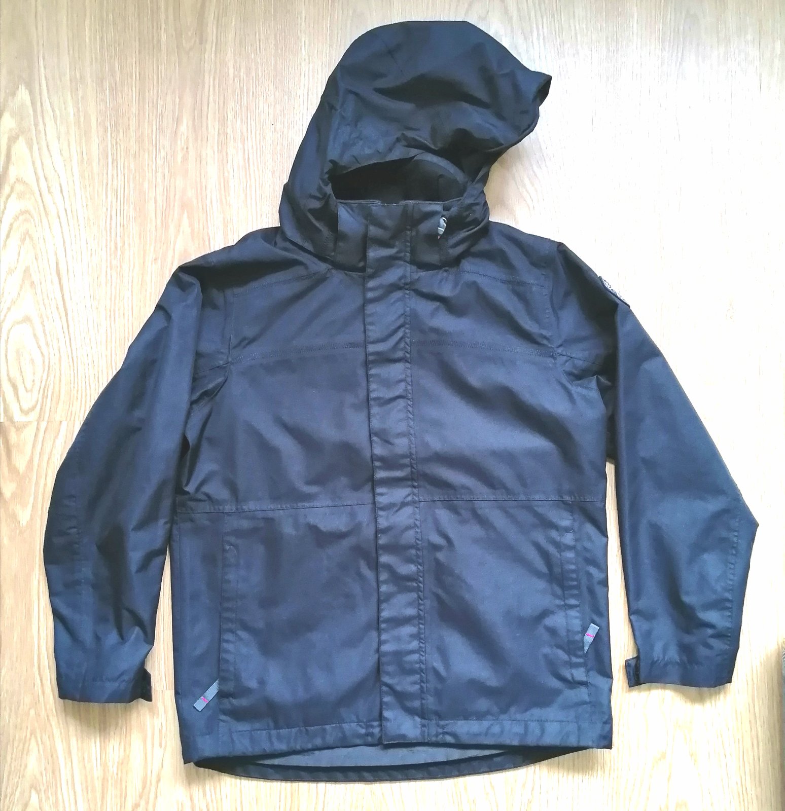 Chlapčenská prechodná bunda v čiernej farbe, s kapuckou, podšitá, zapínanie na zips s prekrytím, vpredu 2 funkčné bočné vrecká, dolu sa dá stiahnuť na zarážky, stiahnuteľný rukáv na suchý zips.