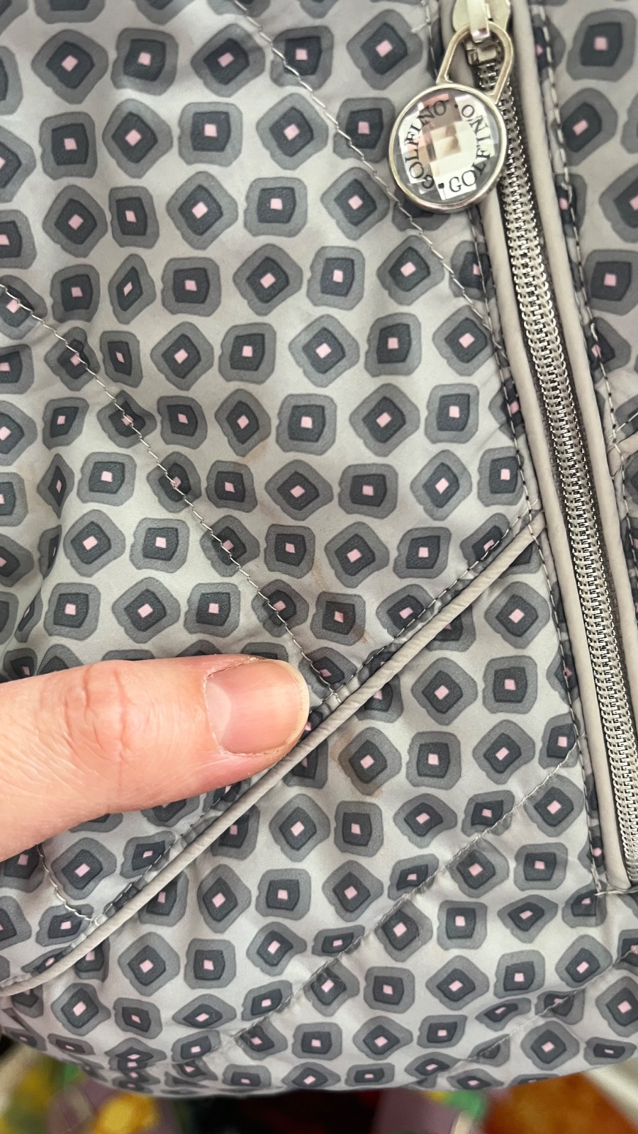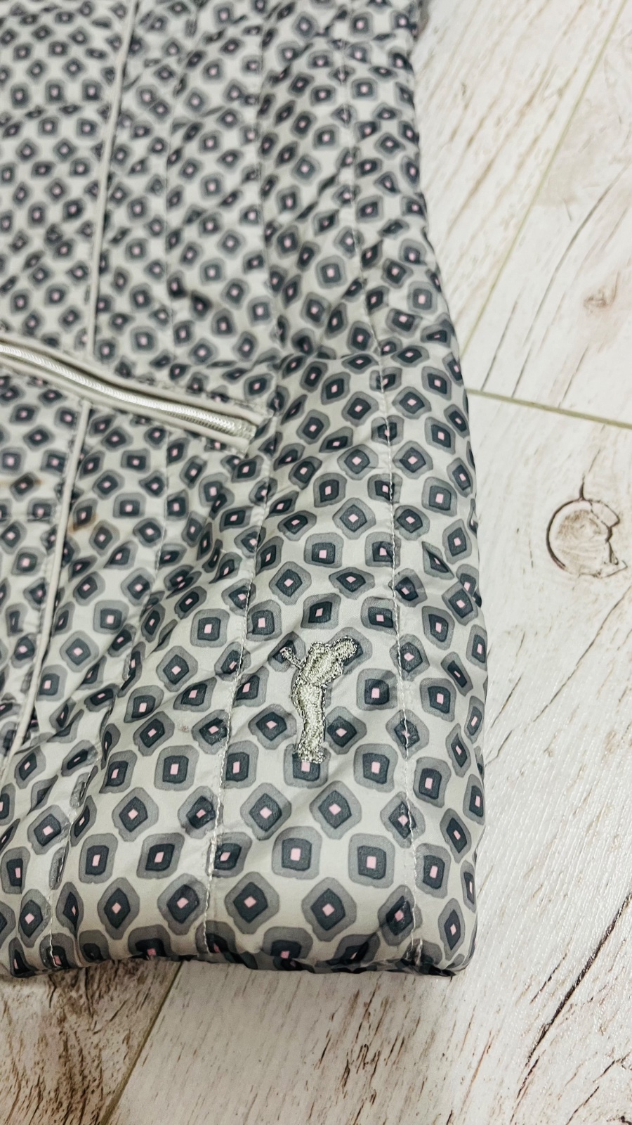 Má žiaľ fľak (ktorý skoro nevidiet) na spodku vesty.(vid foto posledná fotka).