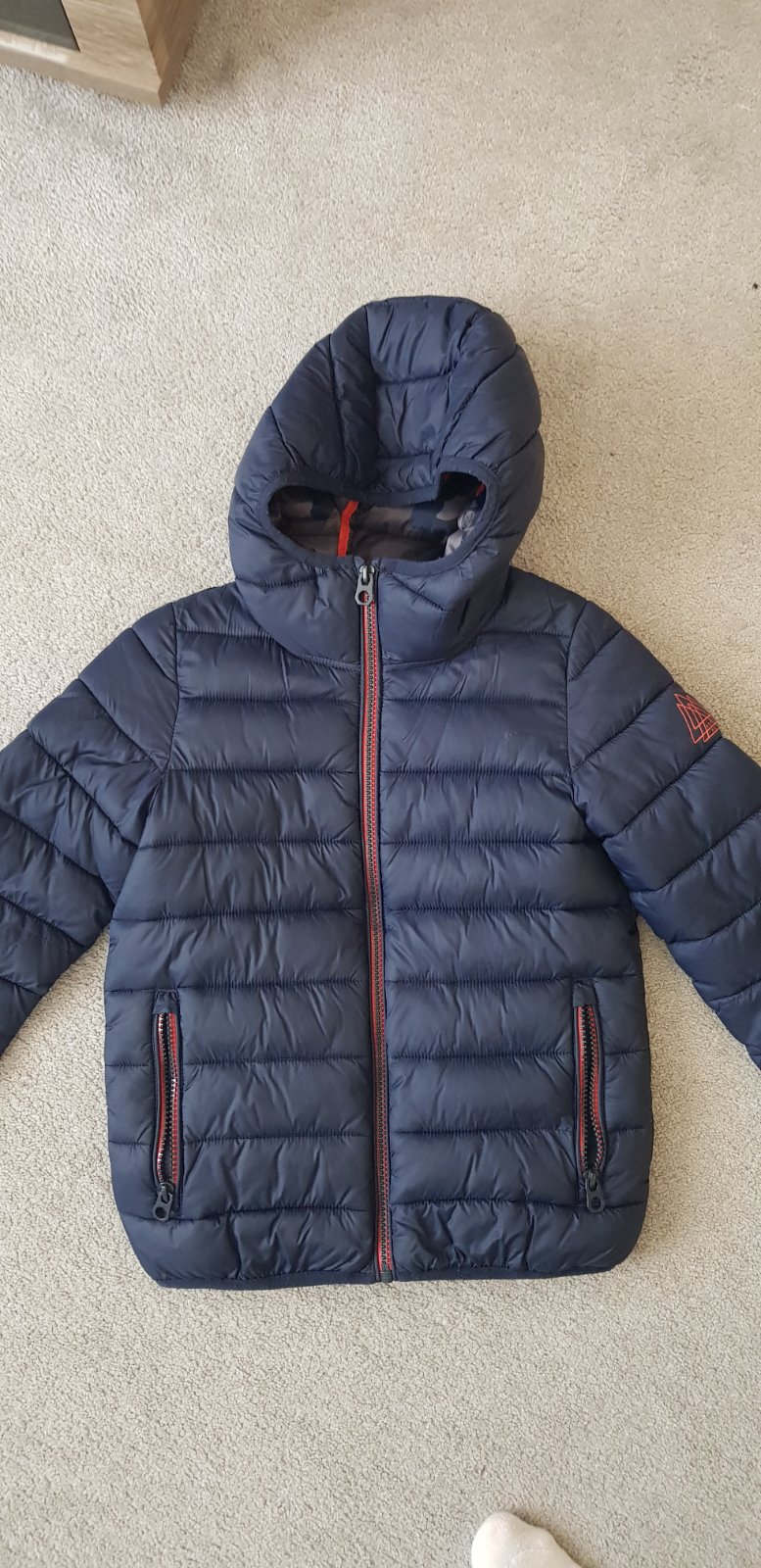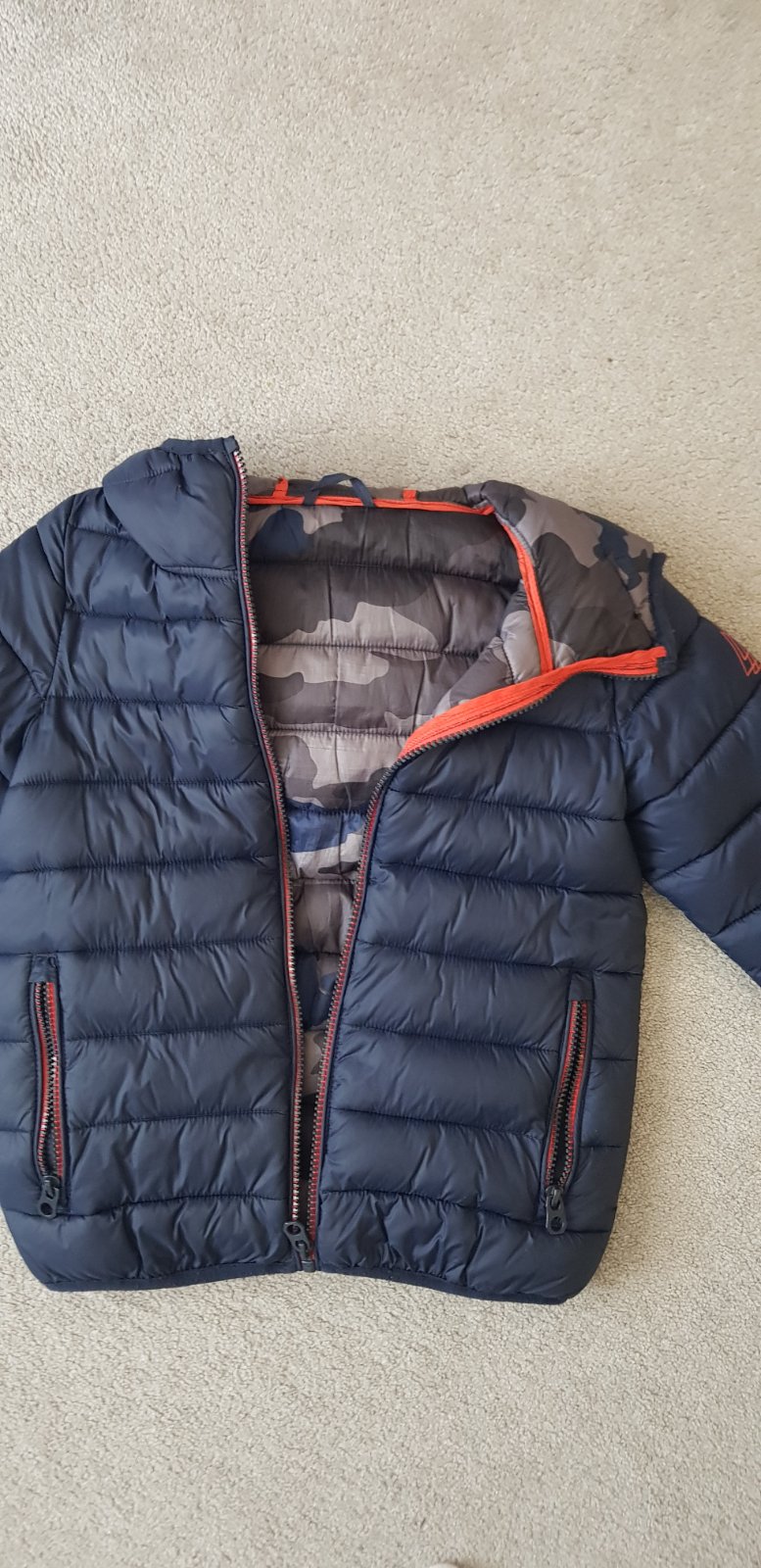 Nosena tenka sportova bundicka s podsivkou, kapucnou, zapinanie na zips, s bocnymi vreckami, gumicky v rukavoch ako patenty. Od vyrobcu udavana 116, no je trosku vacsia, merana v detailnych fotkach...