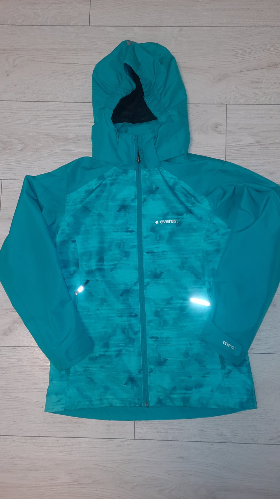 Krásna ako nová funkčná bunda s odnimatelnou kapucňou s reflexnými prvkami vhodná na turistiku neprefuka. Značka everest. Dĺžka 57,5 cm. Dĺžka rukáva od krku 60cm šírka 45 cm. Cena 20e.