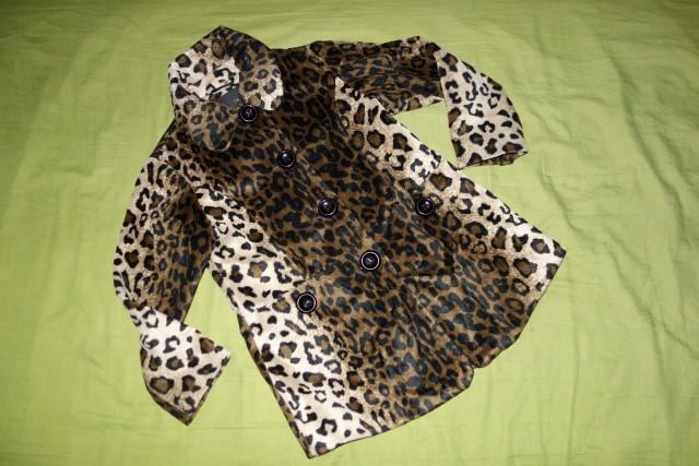 Pekny kabatik s leopardim vzorom v dobrom stave- na materiali trochu vidno pranie. Je tak na prechod, nie je velmi hruby, hoci vrchna latka je hrubsia.