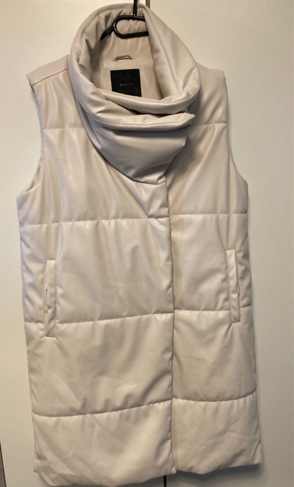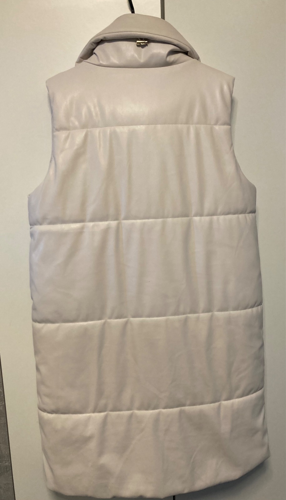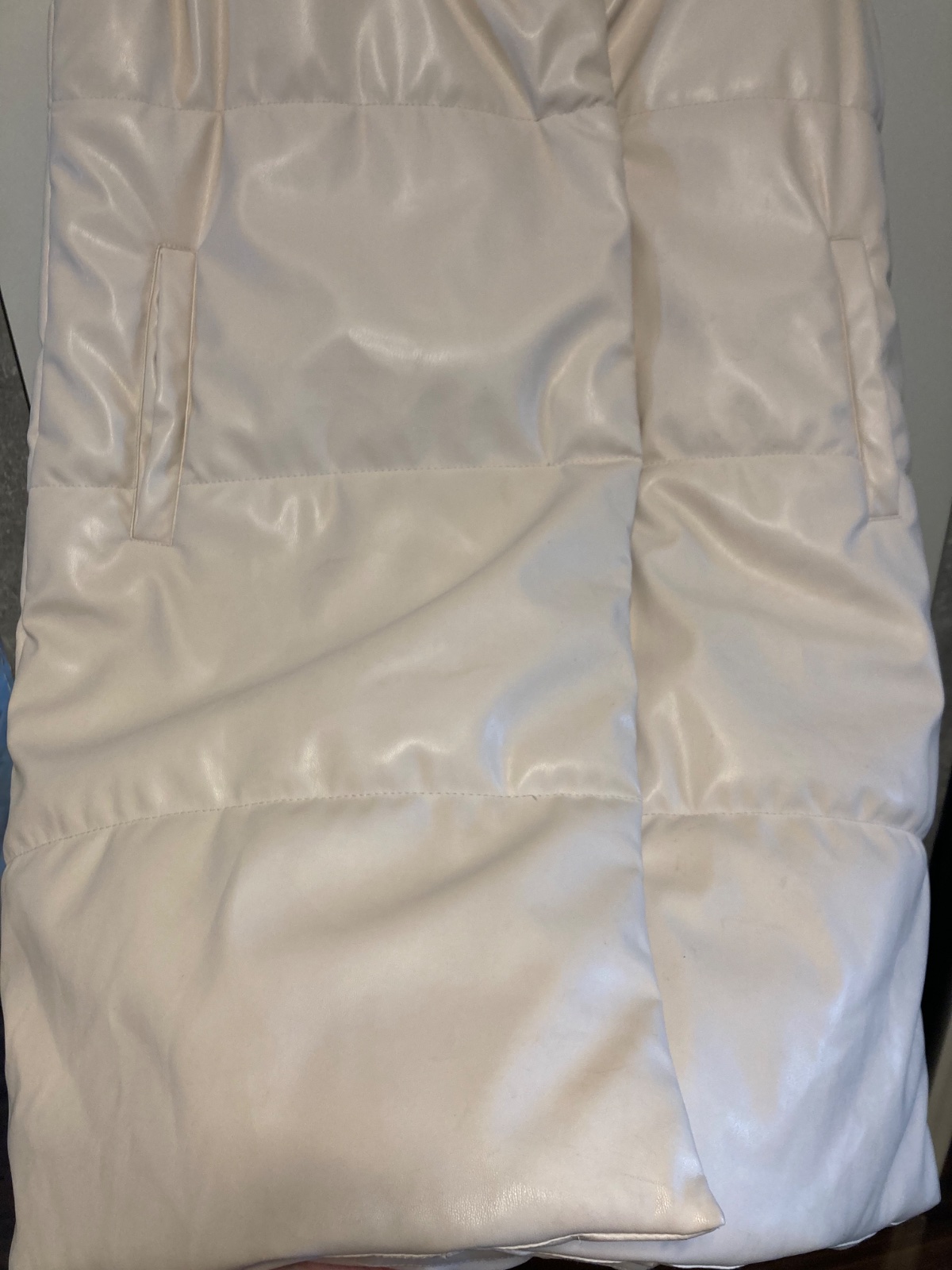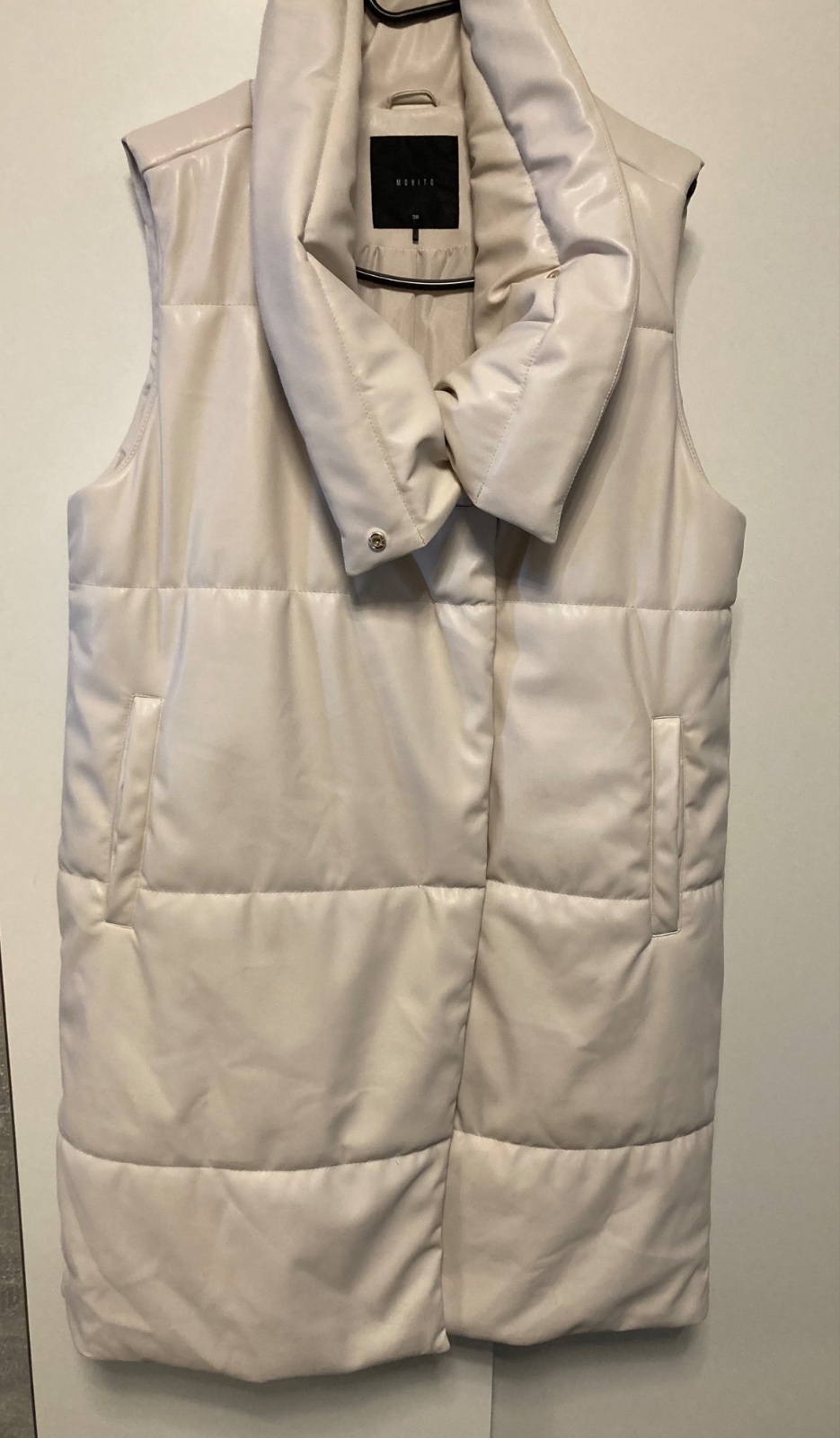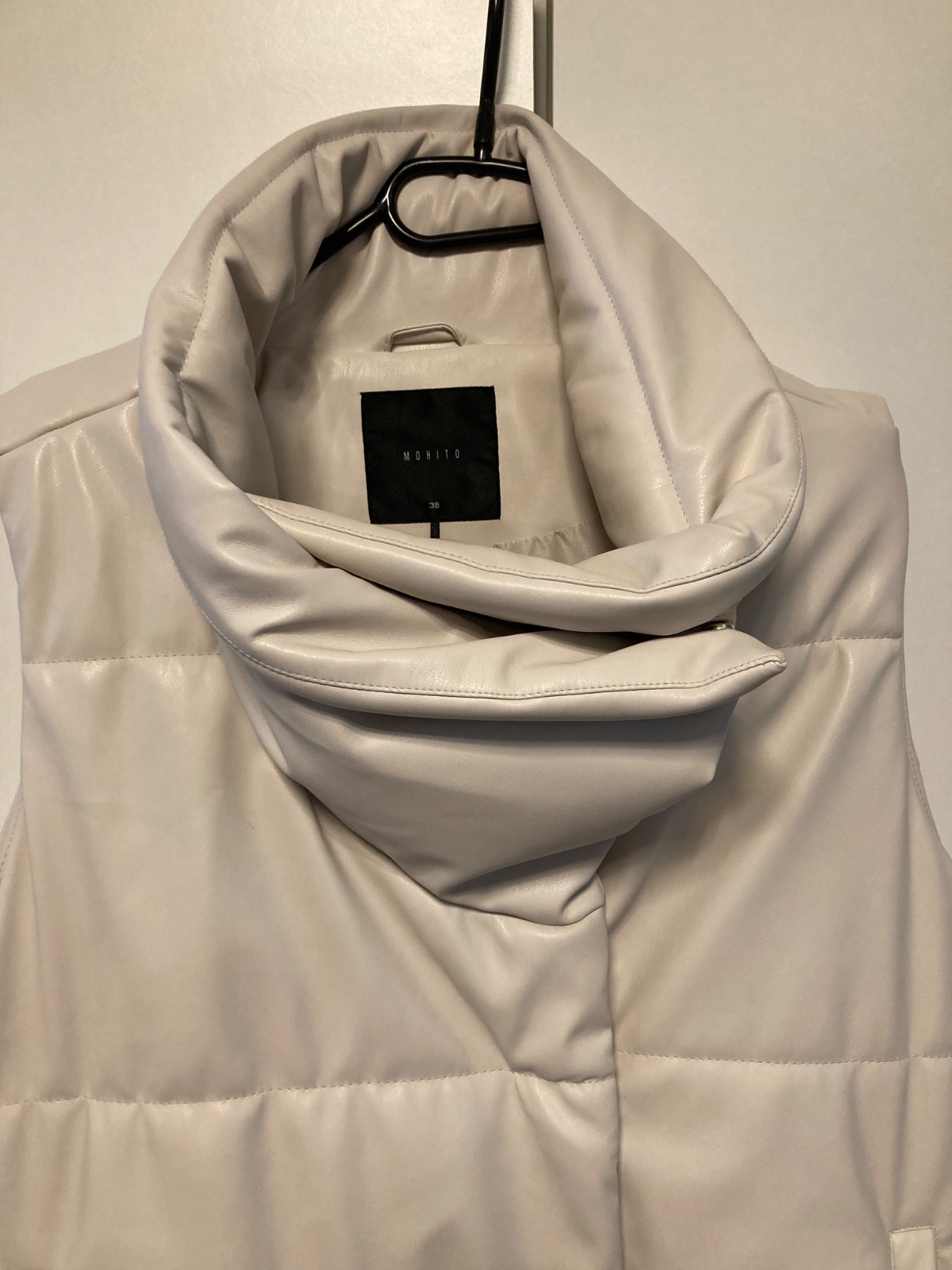 Vesta v dobrom stave.akurát na spodku škvrna.možno sa dá odstránit niečim na kožu..neskúšala som.v zapnutom stave pro nosení to vôbec nie je vidieť.stav všetko pekne vidieť na foto.inak pekná,nositelná..koženková.plus pošta.