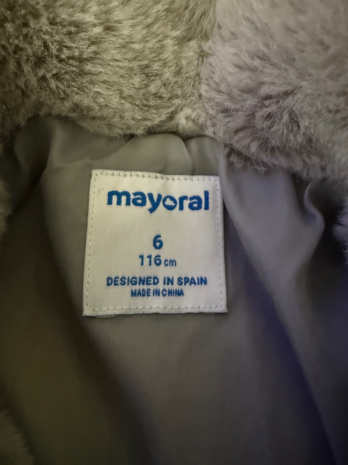 Krasny mayoral kabat vyborny stav, vhodny na bezne nosenie do skolky skoly medena tm hneda velmi krasna farba, kabat na zips zatepleny, kapucna zipsom odnimatelna tak isto aj kozusinka zvlast odop...