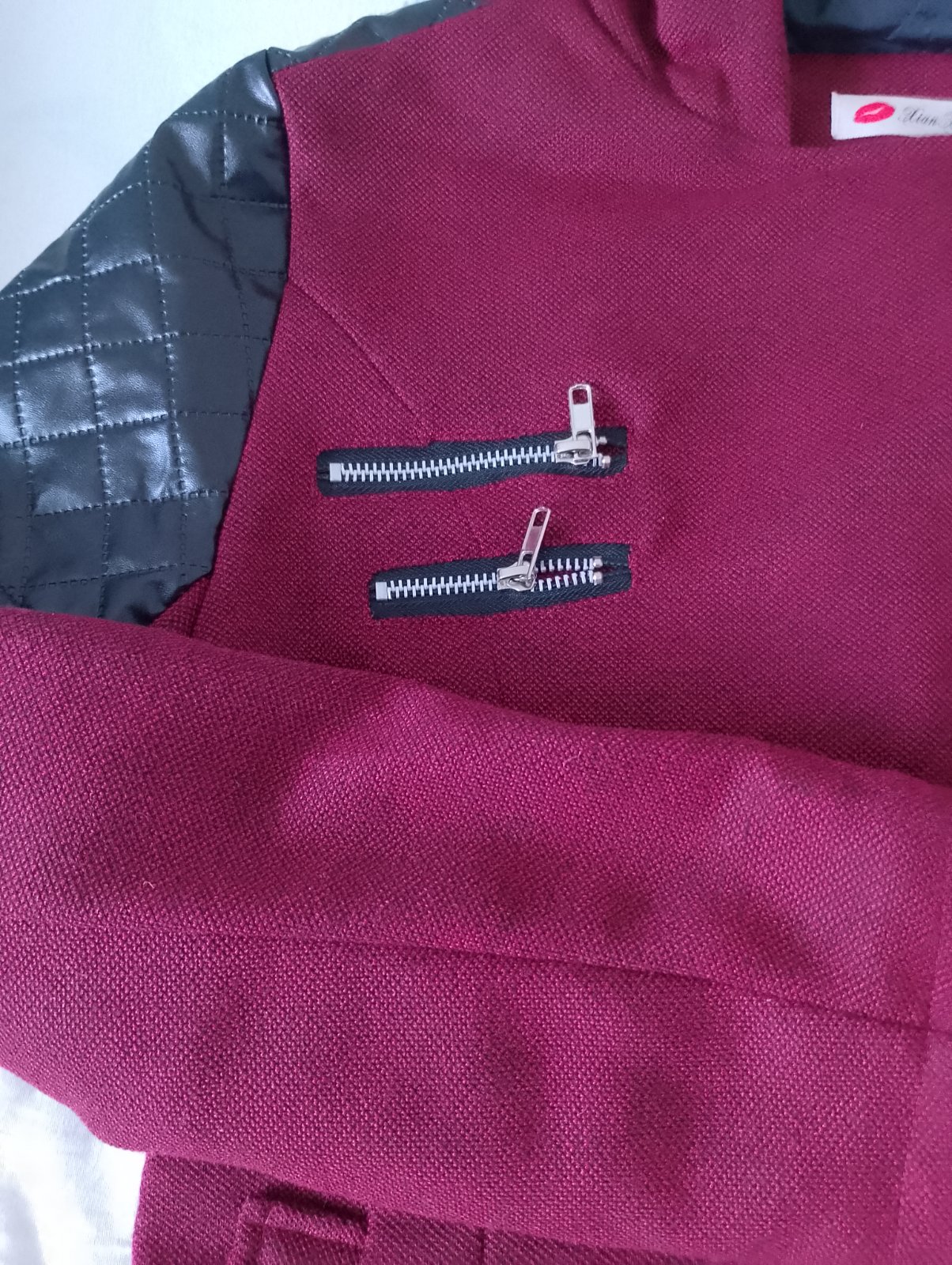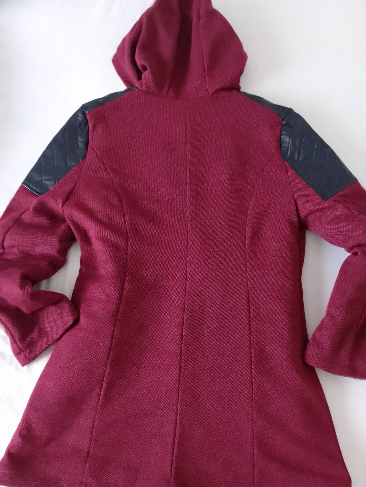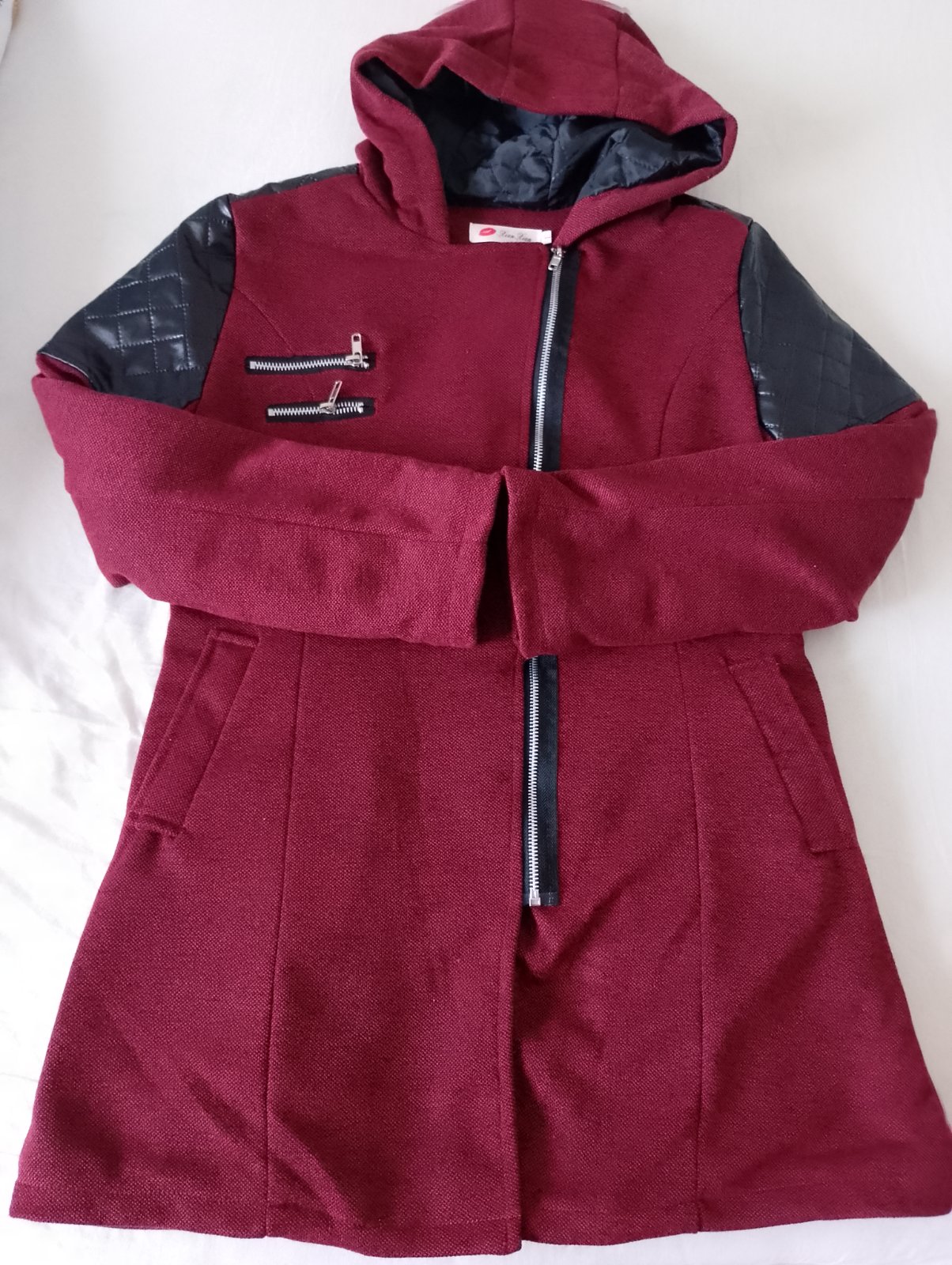 Nový kabát bohužiaľ mne malý, nevyuzijem, farba ako víno, podšitý, dĺžka 80 cm, pás 44 cm, dolu najširšia časť 60 cm, rukáv plus plece spolu 70 cm, z toho plece 12 cm, písané L ale riaďte sa rozmermi skôr M / 38. Vhodný aj ako darček, pôvodná cena 50 eur, ponúkam za 30 eur, nech si nájde majiteľku 🙂