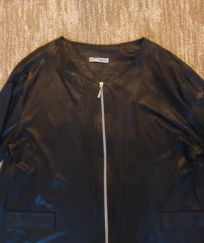 Tenučká, ľahká bundička zn. Magna, veľ.XL, čiernej farby, na prednej strane falošné vrecká, bez podšívky, dĺžka 64 cm, materiál polyester.