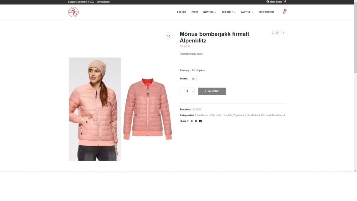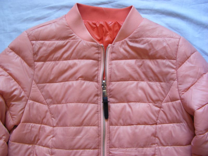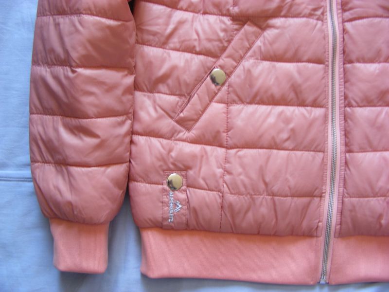 SkladomObojstranná prešívaná bunda kvalitnej zn. Alpenblitz, zapínanie na zips, bočné funkčné vrecká z oboch strán uzatvárateľné na patent, rukávy aj spodok bundy ukončený manžetou. Farba na visačke uvedená rose-peach (z jednej strany bledoružová, z druhej broskyňová). Prechodná, vhodná na jeseň/jar.