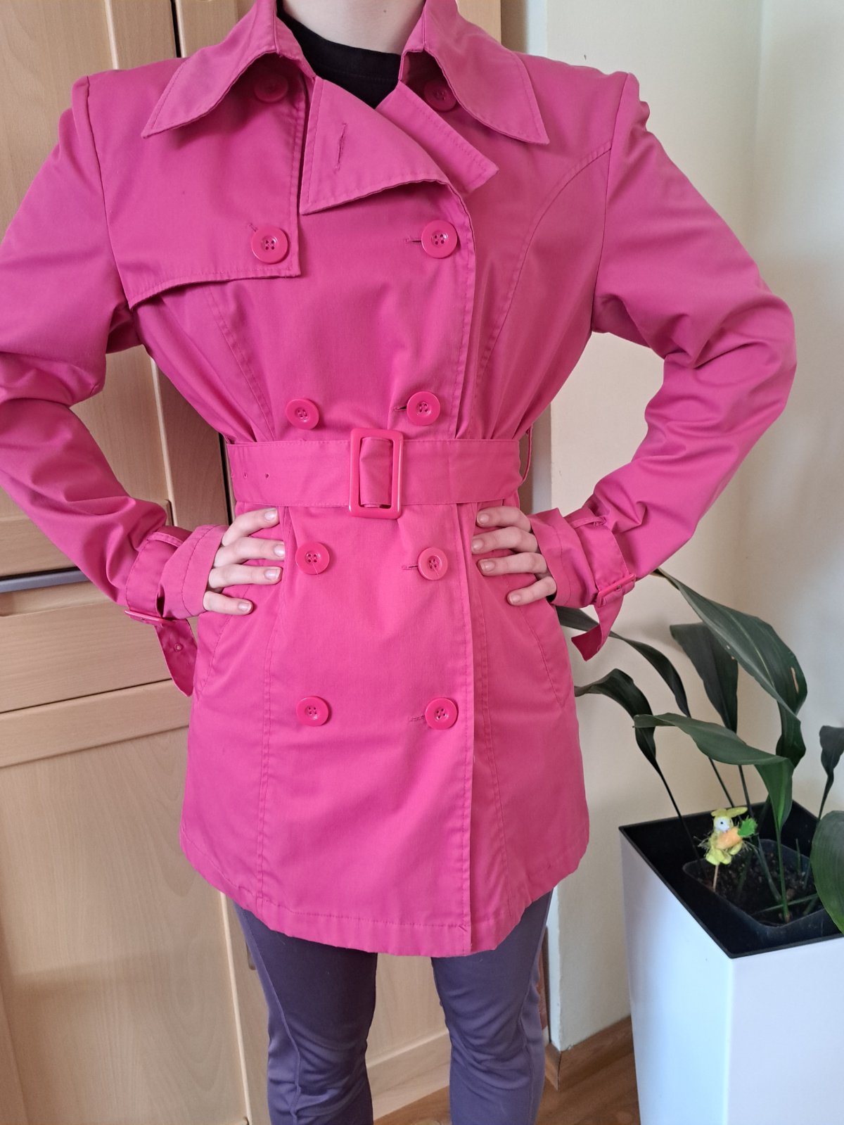 Zachovalý jarný kabátik. Šírka pod pazuchami 49cm, dĺžka 75. Farba je ako fotkách na postave.