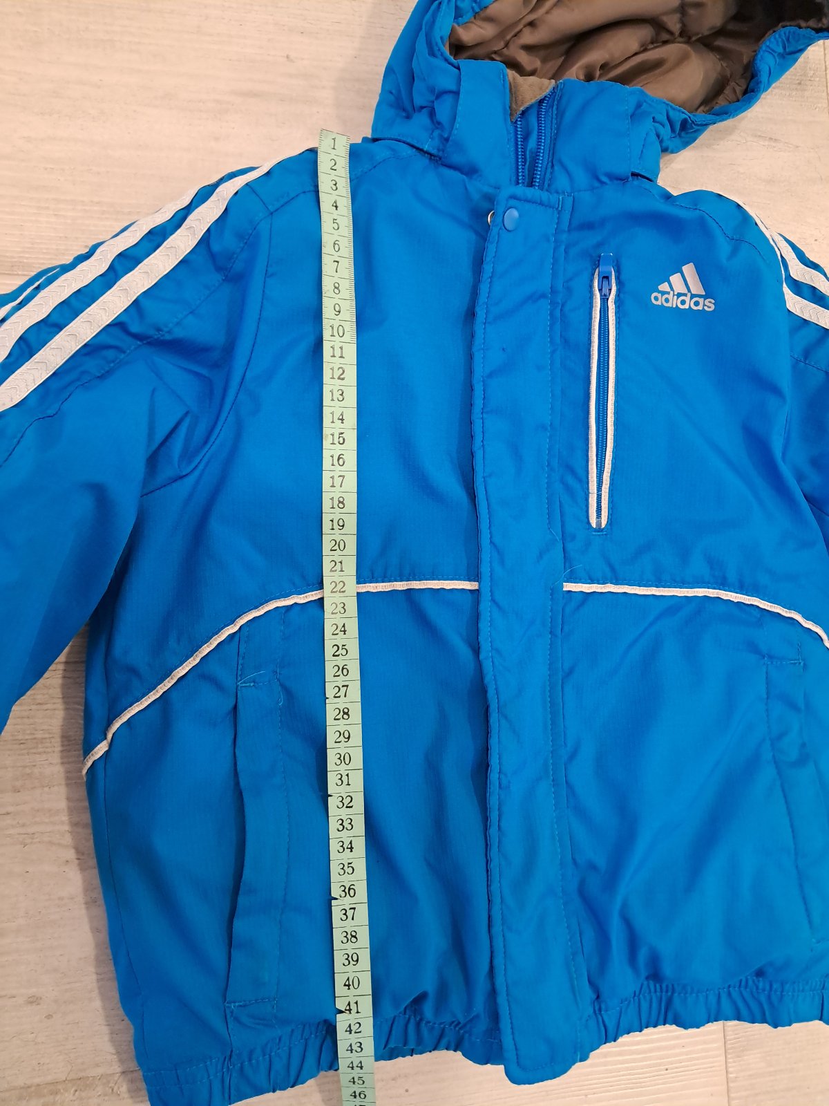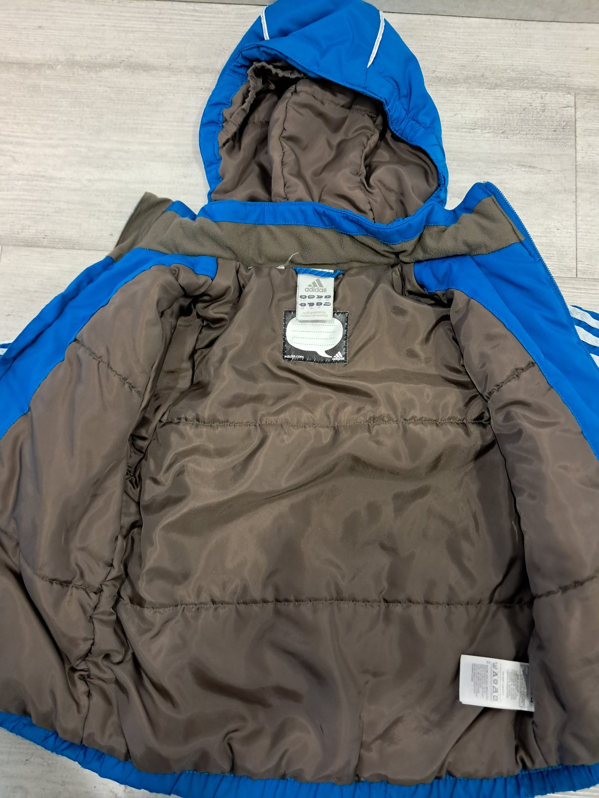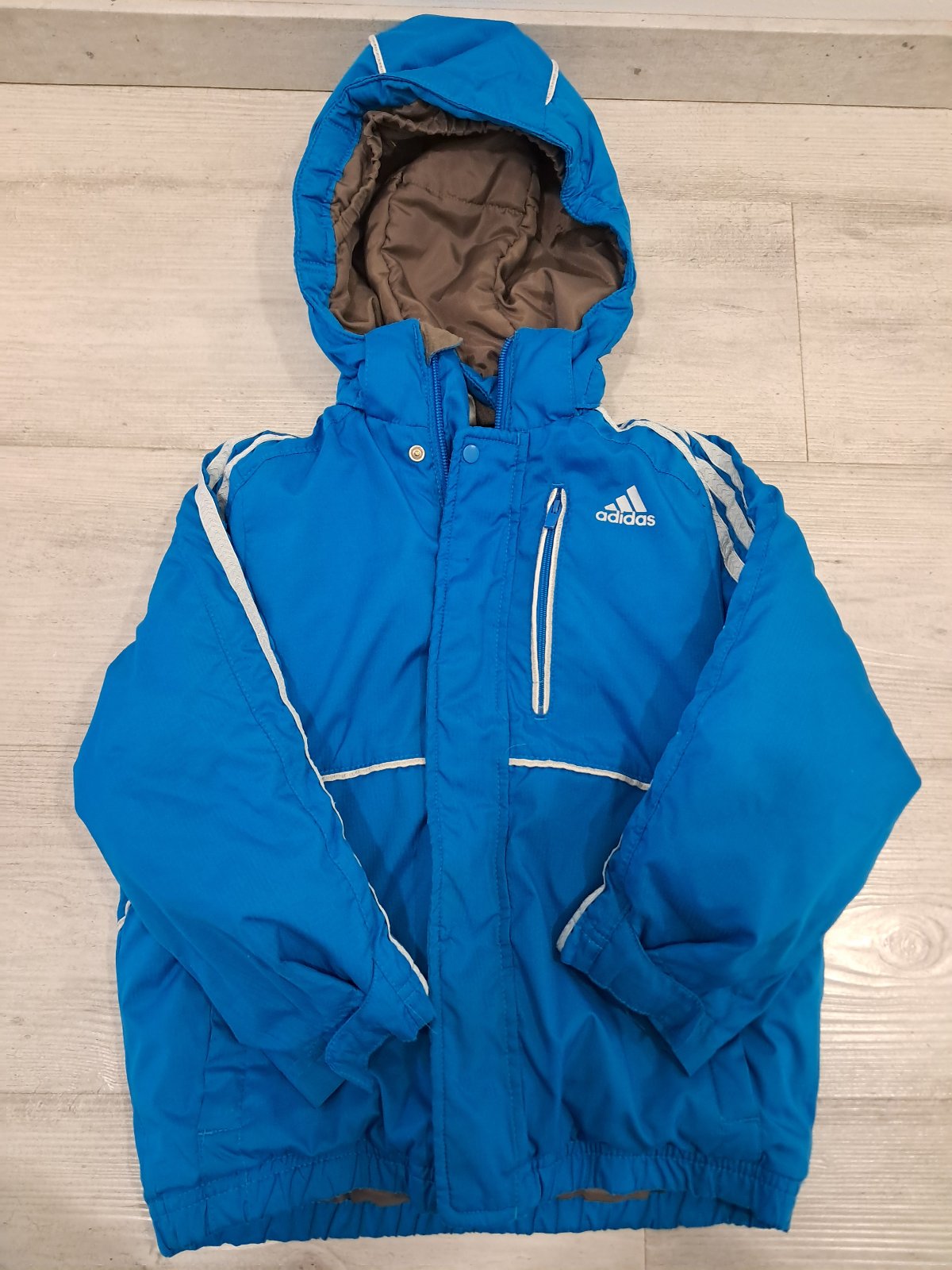 Predám modrú zimnú bundu, veľ. 110, pre 4-5 rokov, zn. adidas, s odnímateľnou kapucou, s nastaviteľnými rukávmi, Pekný nosený stav.