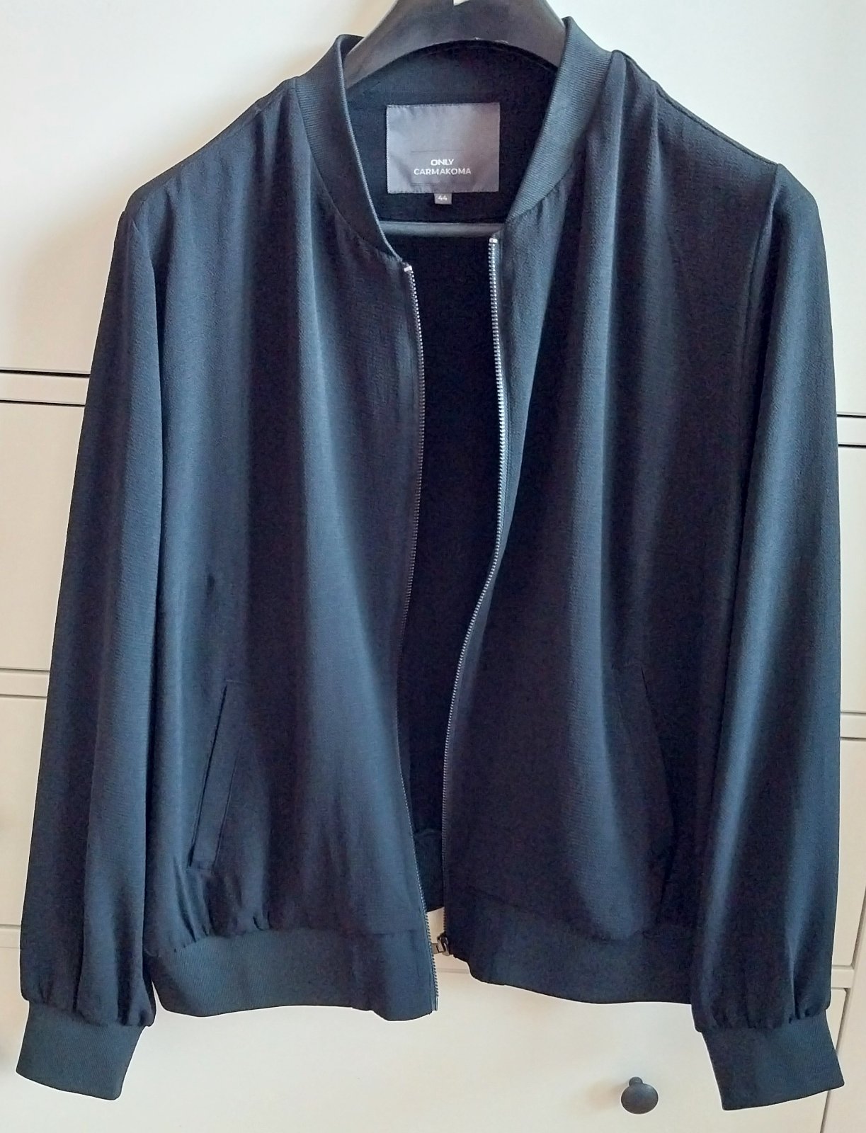 Prechodná bomber bunda "Luxjoy" na zips zn. Only Carmakoma. Veľkosť 44. Strih: uvoľnený fit. Bez podšívky. Rebrované manžety. 2x oblečená. Bez poškodenia. Materiál: polyester.